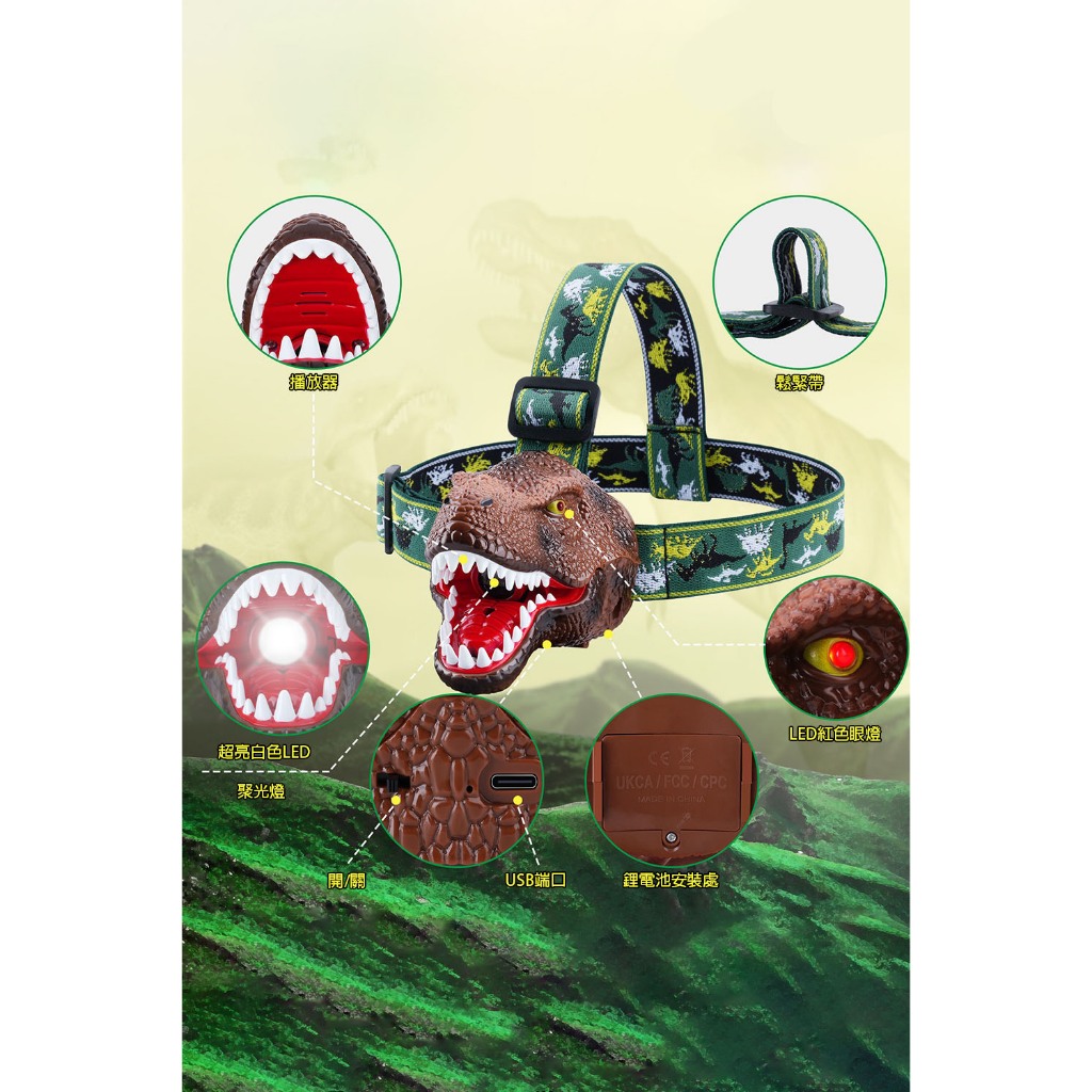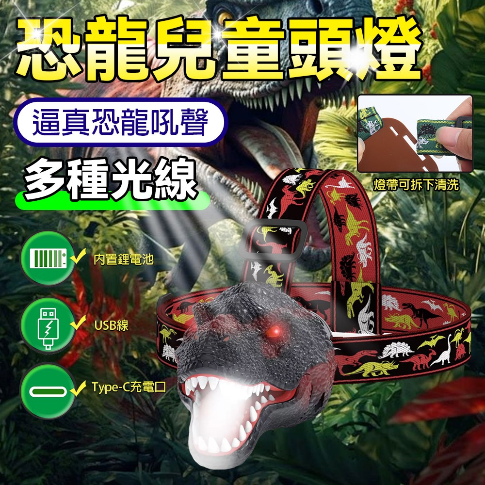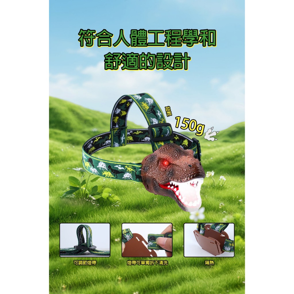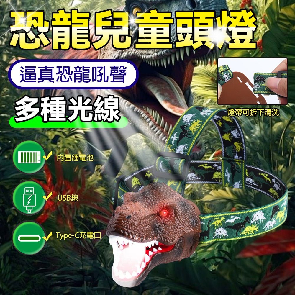 【LADUTA 拉布塔】兒童頭燈 恐龍外形 頭燈 仿真星光 超輕夜燈 LED燈 登山頭燈 露營頭燈 運動 戶外頭燈深棕色|绿色|灰色Camping & Hiking【LADUTA 拉布塔】官方旗艦店