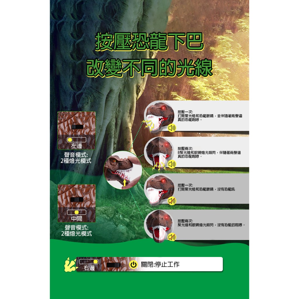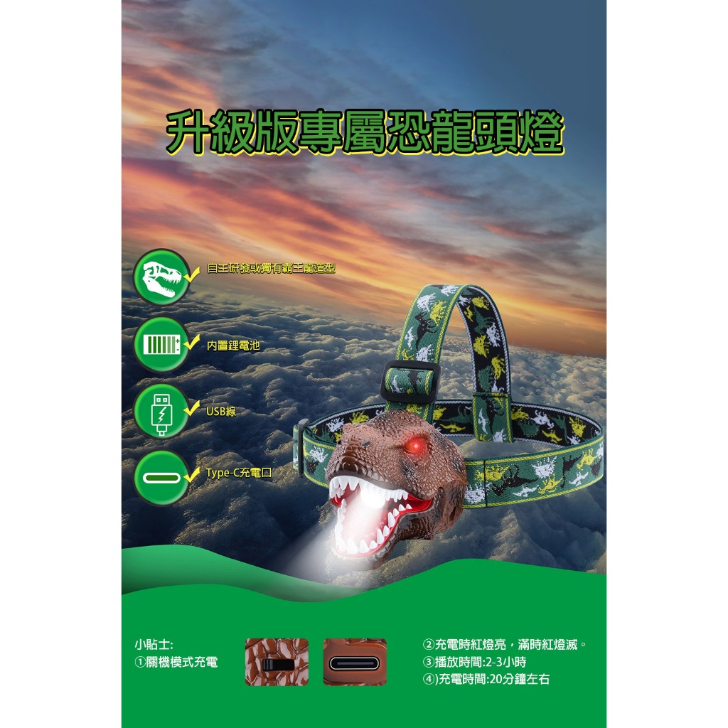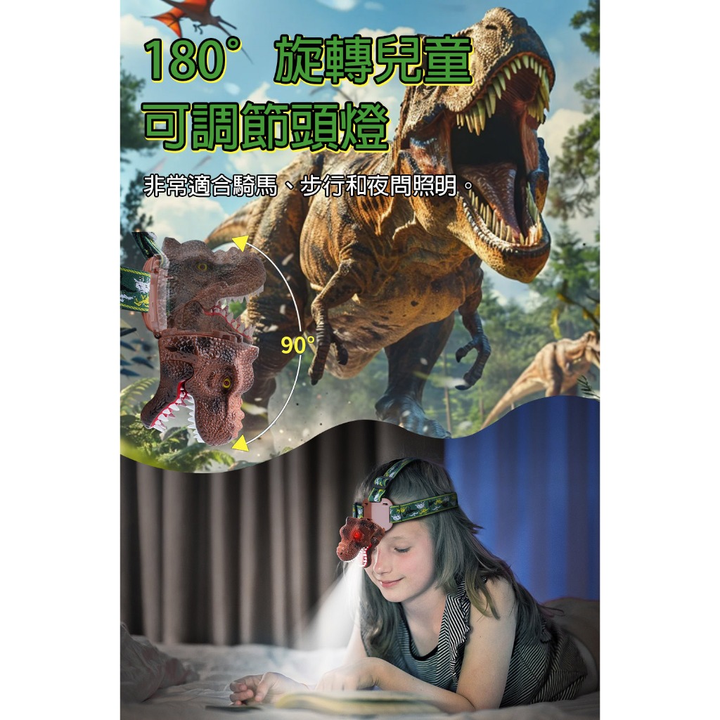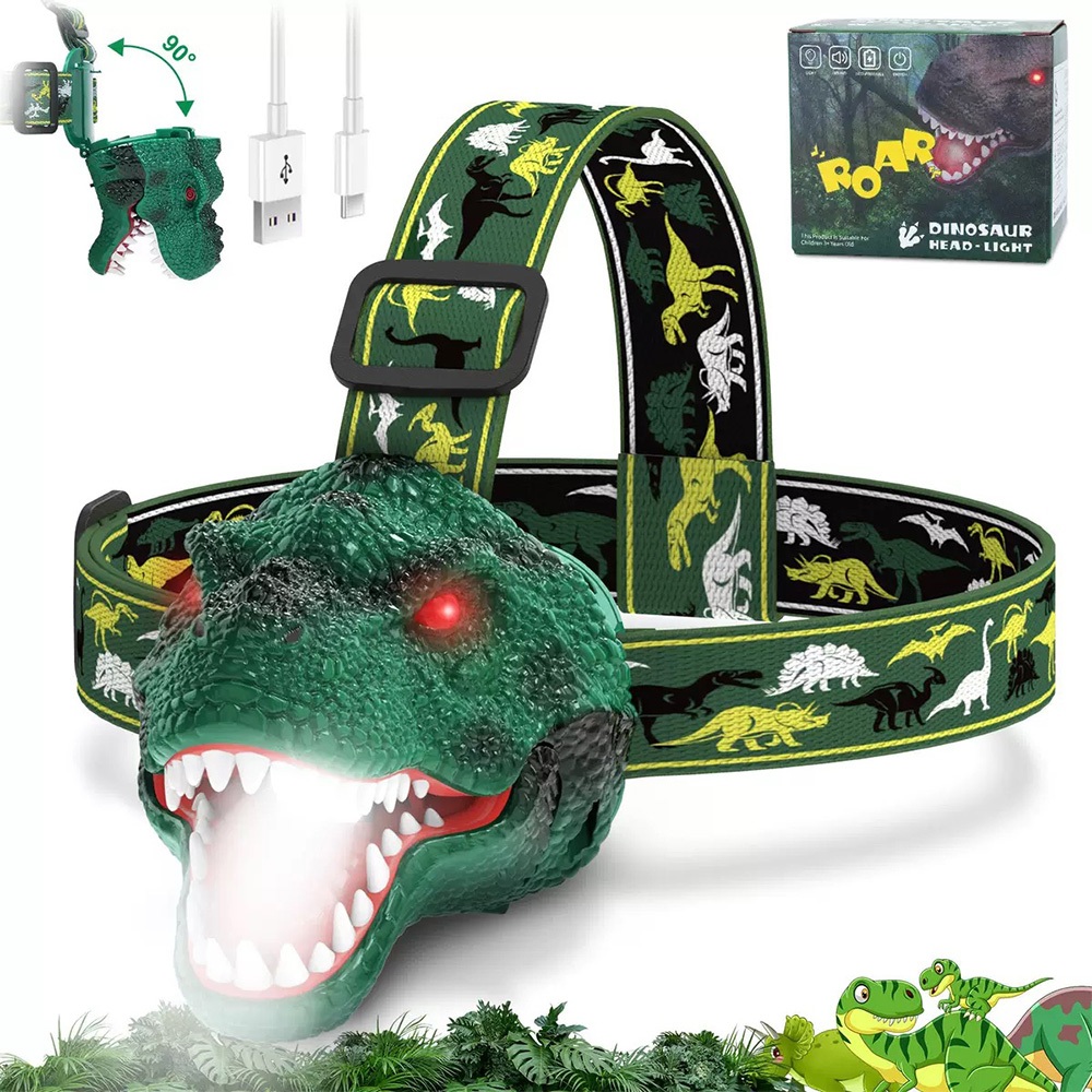 【LADUTA 拉布塔】兒童頭燈 恐龍外形 頭燈 仿真星光 超輕夜燈 LED燈 登山頭燈 露營頭燈 運動 戶外頭燈深棕色|绿色|灰色Camping & Hiking【LADUTA 拉布塔】官方旗艦店