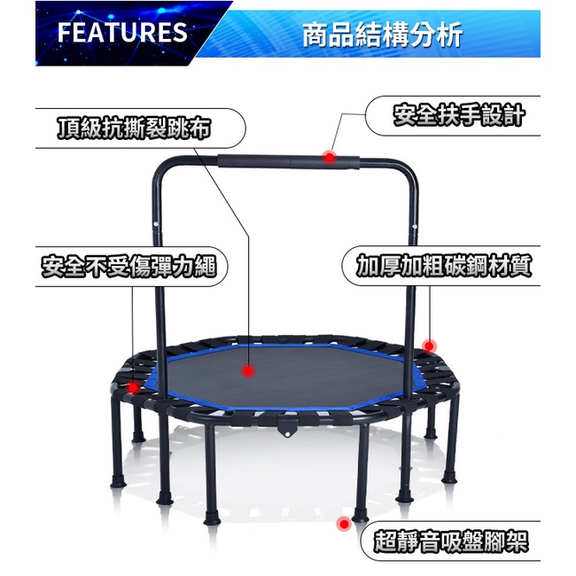 【AD-ROCKET】42吋摺疊彈力繩扶手跳床(兩款任選)(成人兒童兩用款)|品牌旗艦店 跳床 蹦床(台灣24h出貨)ㄇ字把手款|T字把手款Fitness EquipmentAD ROCKET