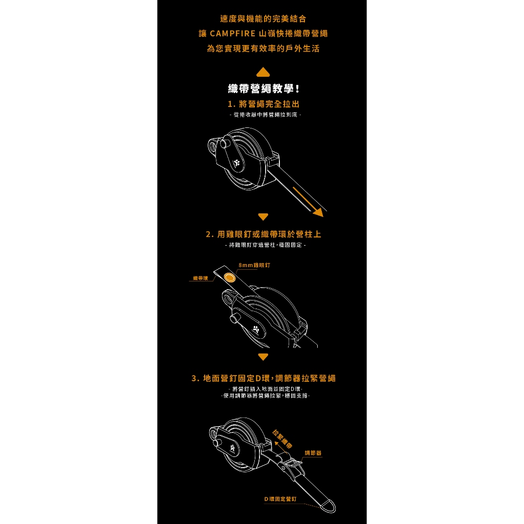 CAMPFIRE 營火部落 山嶺快捲織帶營繩 帳篷 天幕可用【露營狼】【露營生活好物網】營繩Camping & Hiking【露營狼】【露營生活好物網】