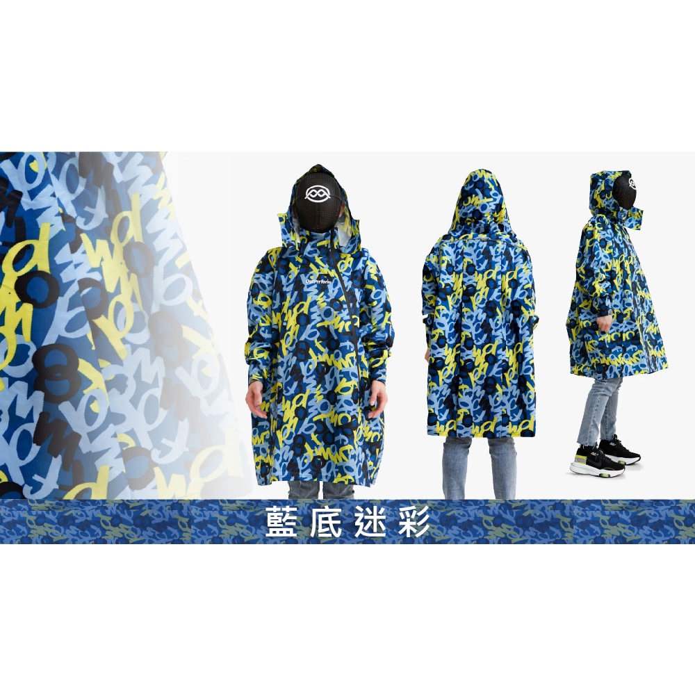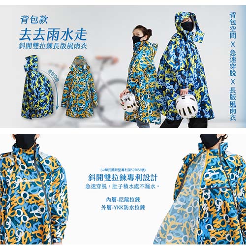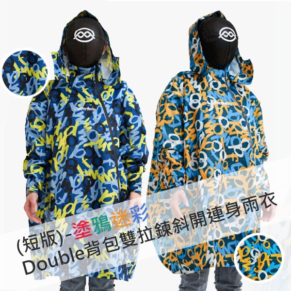 (短版)Double背包雙拉鍊斜開連身雨衣-塗鴉迷彩籃底迷彩|綠底迷彩Rain Coats923就愛傘 官方直營店