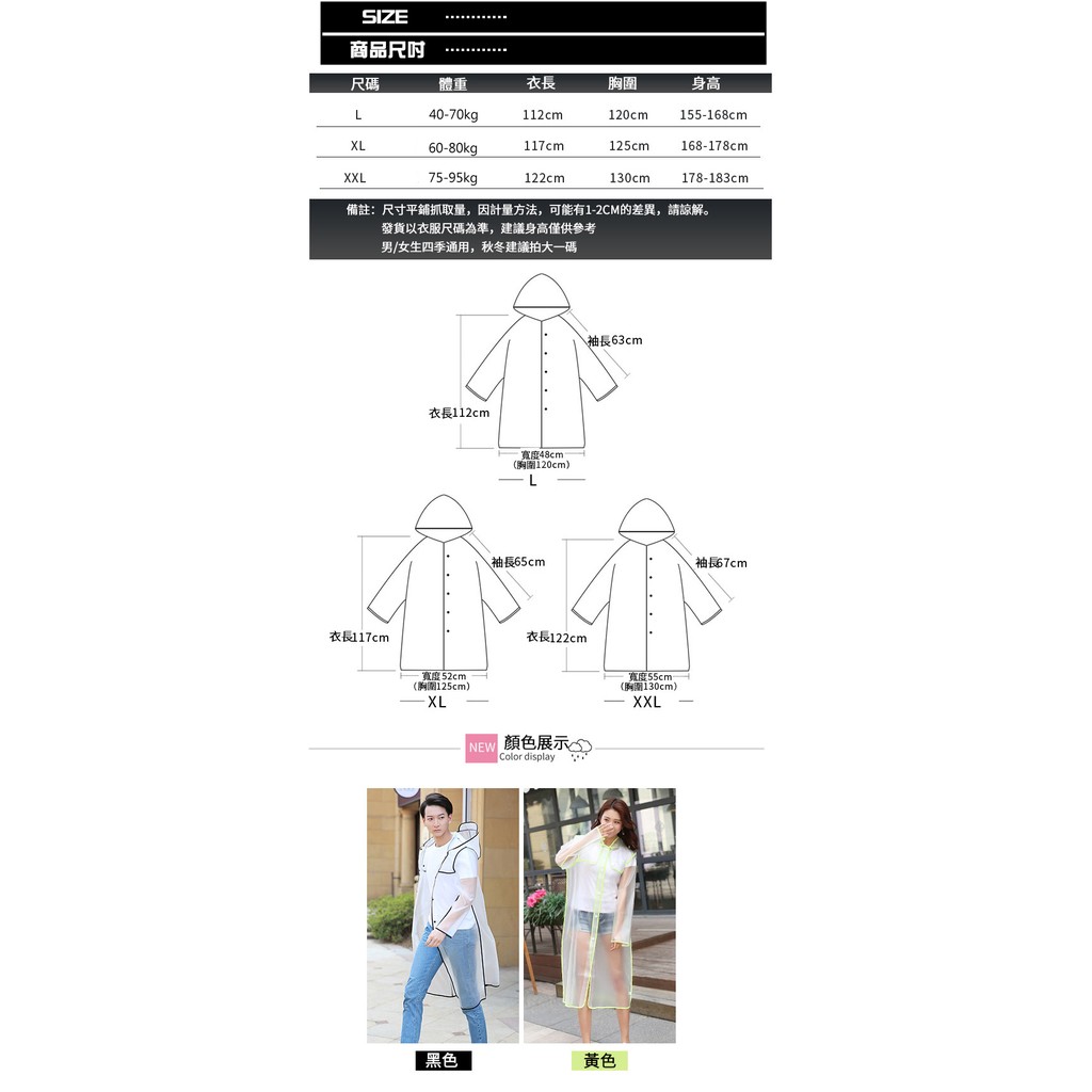 EVA環保材質透明雨衣 透明雨衣 BANG 不黏身 多色多尺吋 時尚環保無毒透明 雨衣【HO03】黑M|黑L|黑XL|黃M|黃L|黃XLRain CoatsBANG 潮流男女裝服飾、流行生活百貨專賣