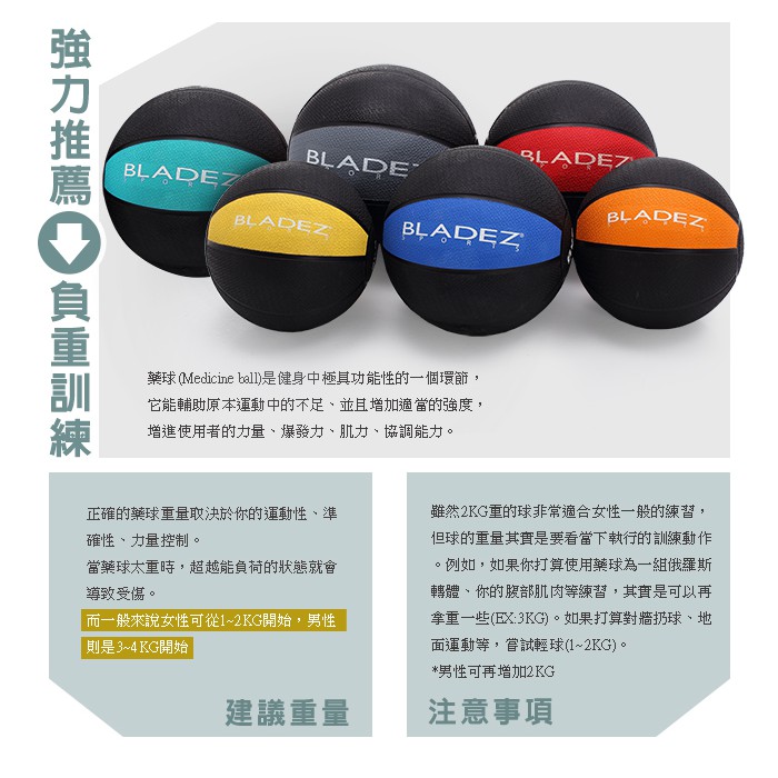 【BLADEZ】橡膠1KG藥球【BLADEZ】橡膠1KG藥球Fitness EquipmentBH 歐洲百年品牌 X BLADEZ 旗艦館
