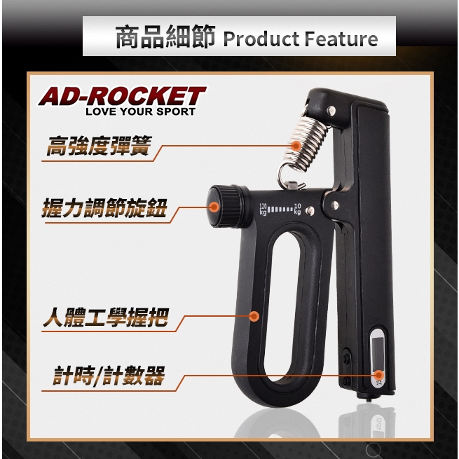 【AD-ROCKET】120kg阻力電子計數握力器(兩色任選)|品牌旗艦店 握力訓練 手指 手腕 指力(台灣24h出貨)