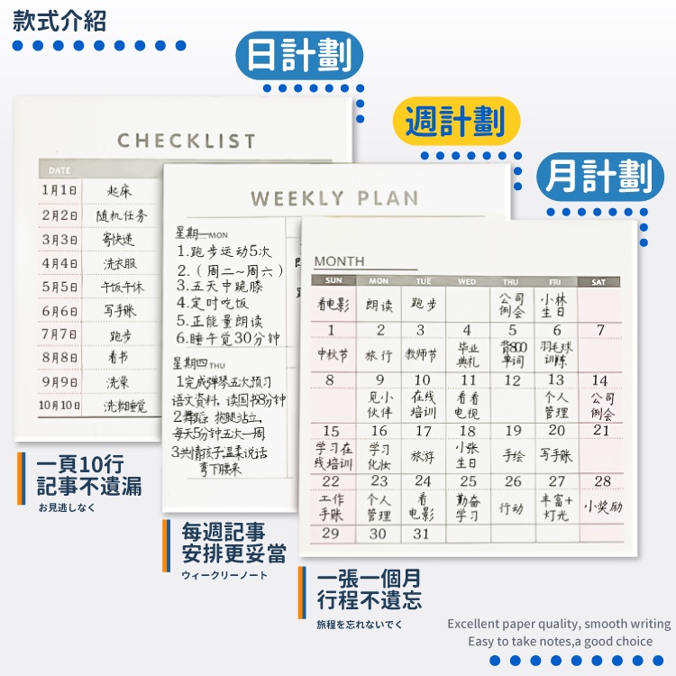 日程計劃便條本 計畫便條紙 日計劃 週計劃 月計劃 便條紙 備忘錄 便條 標籤紙 清單 記事【小麥購物】【G408】日計劃|一本60張|週計劃|一本60張|月計劃|一本60張Memo & Sticky Notes 小麥購物