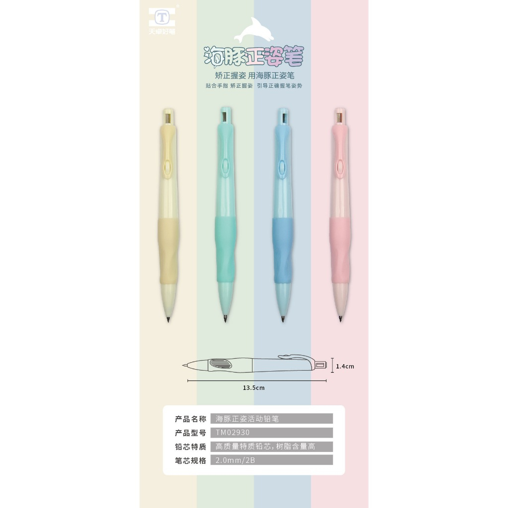 可愛海豚正姿筆 1支 現貨 隔日配 學生正姿活動鉛筆 海豚矽膠貼手 矯正握姿自動鉛筆 2.0MM 學生字寫端正握筆1支筆(顏色隨機)|1盒筆芯(內有8支)|5盒筆芯|10盒筆芯PencilsBK批發小舖