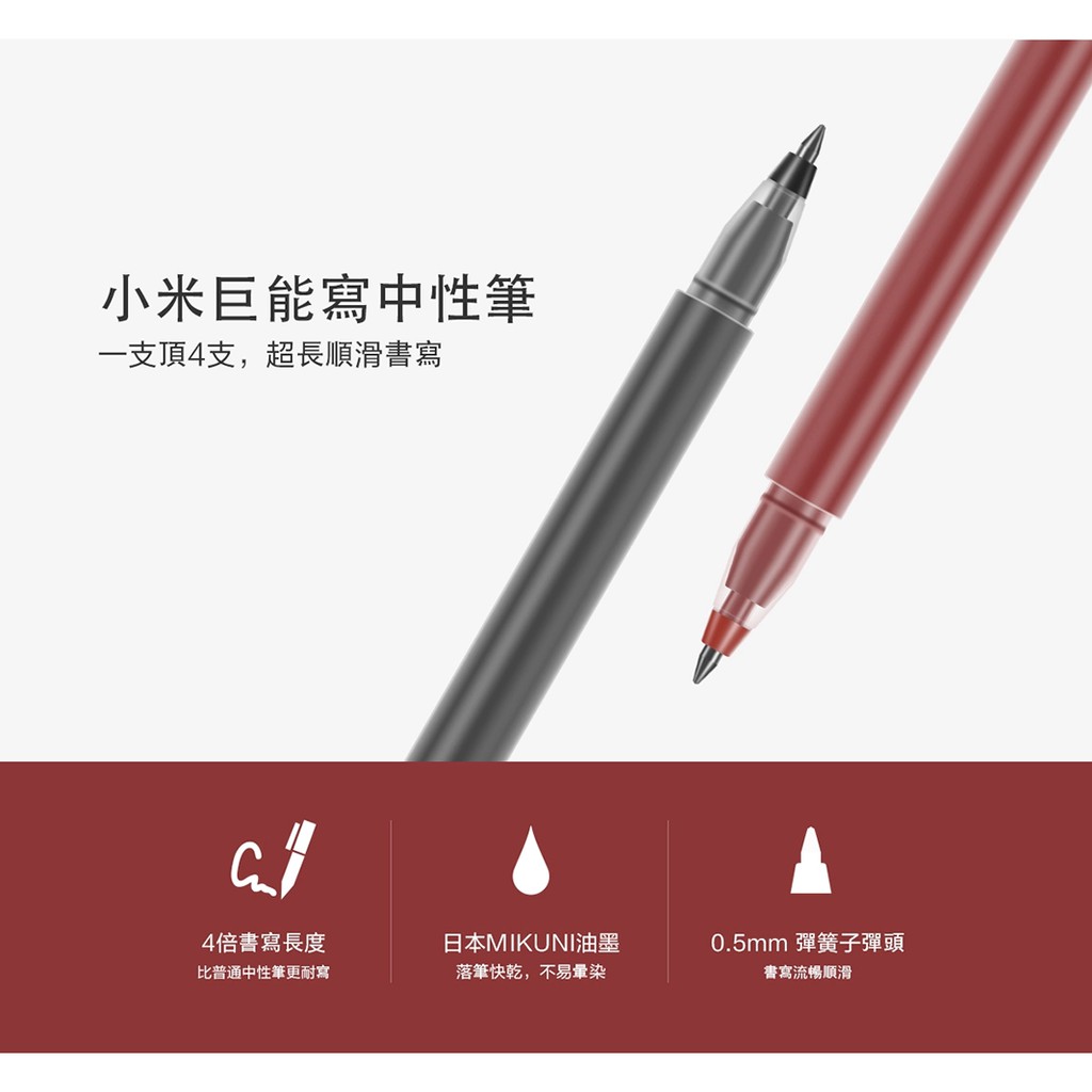 小米 巨能寫中性筆 黑/紅【台灣現貨】大包裝 紅筆黑筆 原子筆 黑筆 紅筆 彈簧子彈筆頭 隨身筆 辦公用品文具紅色單入|黑色單入Pens & InksAP 3C旗艦館