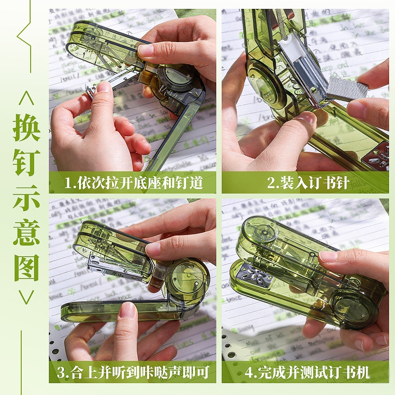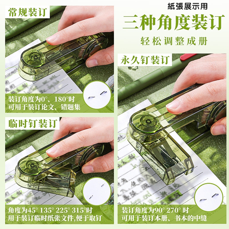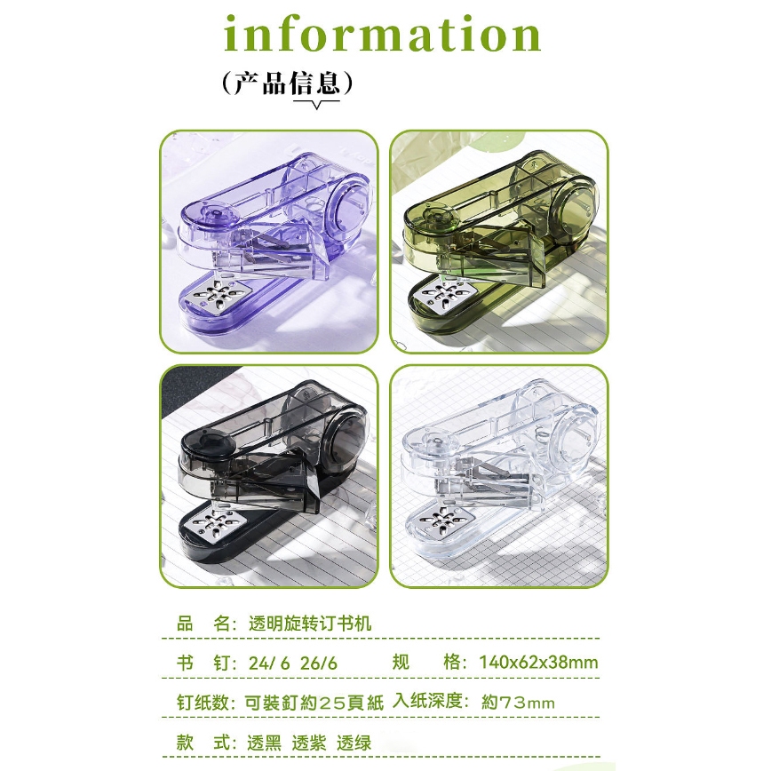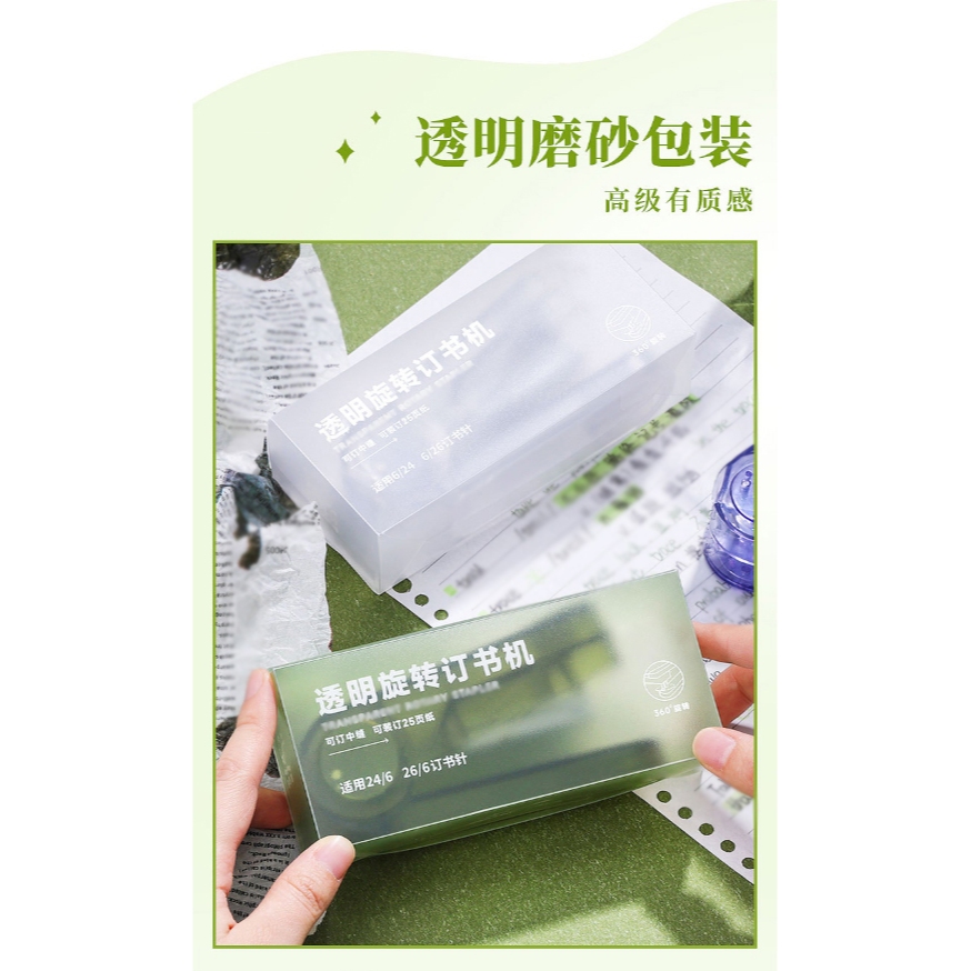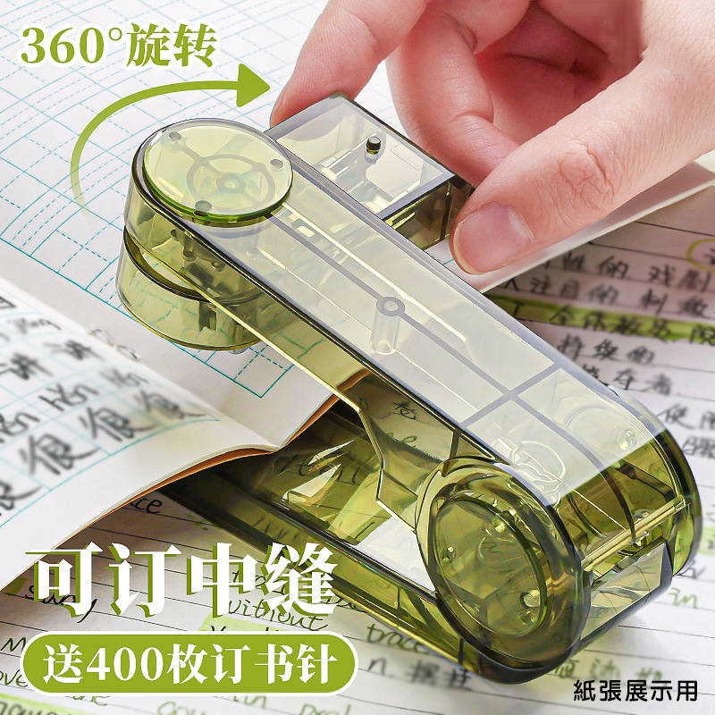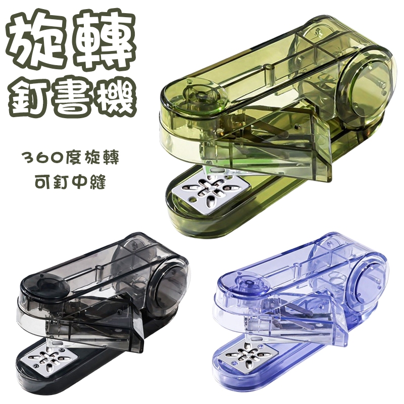 旋轉釘書機 辦公文具 釘書機 360度旋轉釘書機 文具 書本釘裝 訂書機 贈釘書針 可釘中縫 旋轉訂書機 多模式裝釘透紫|透綠|透黑Staplers & StaplesADHIL旗艦店