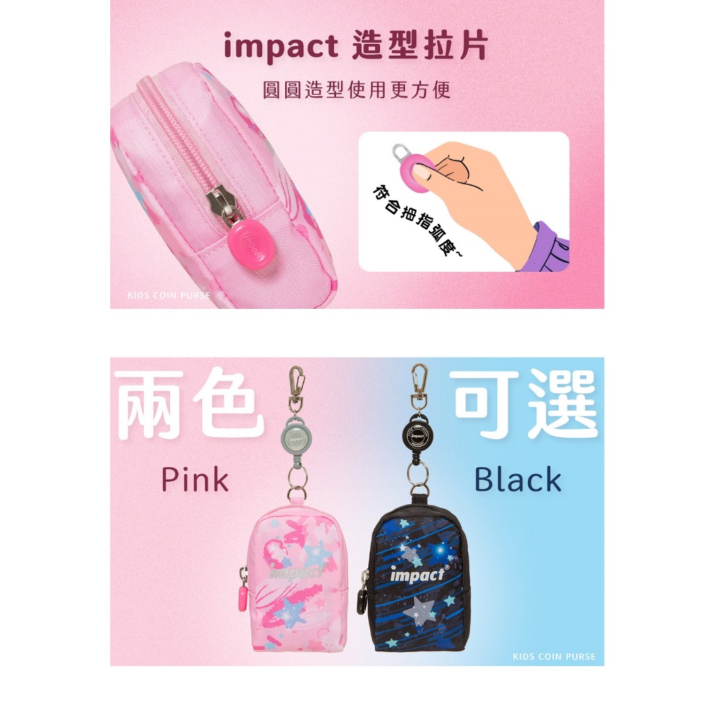 【IMPACT 怡寶】伸縮掛式零錢包-兒童學用品-黑IM00K11BK/粉色 IM00K11PK黑|粉OthersBAG TO YOU 百達遊官方授權旗艦店