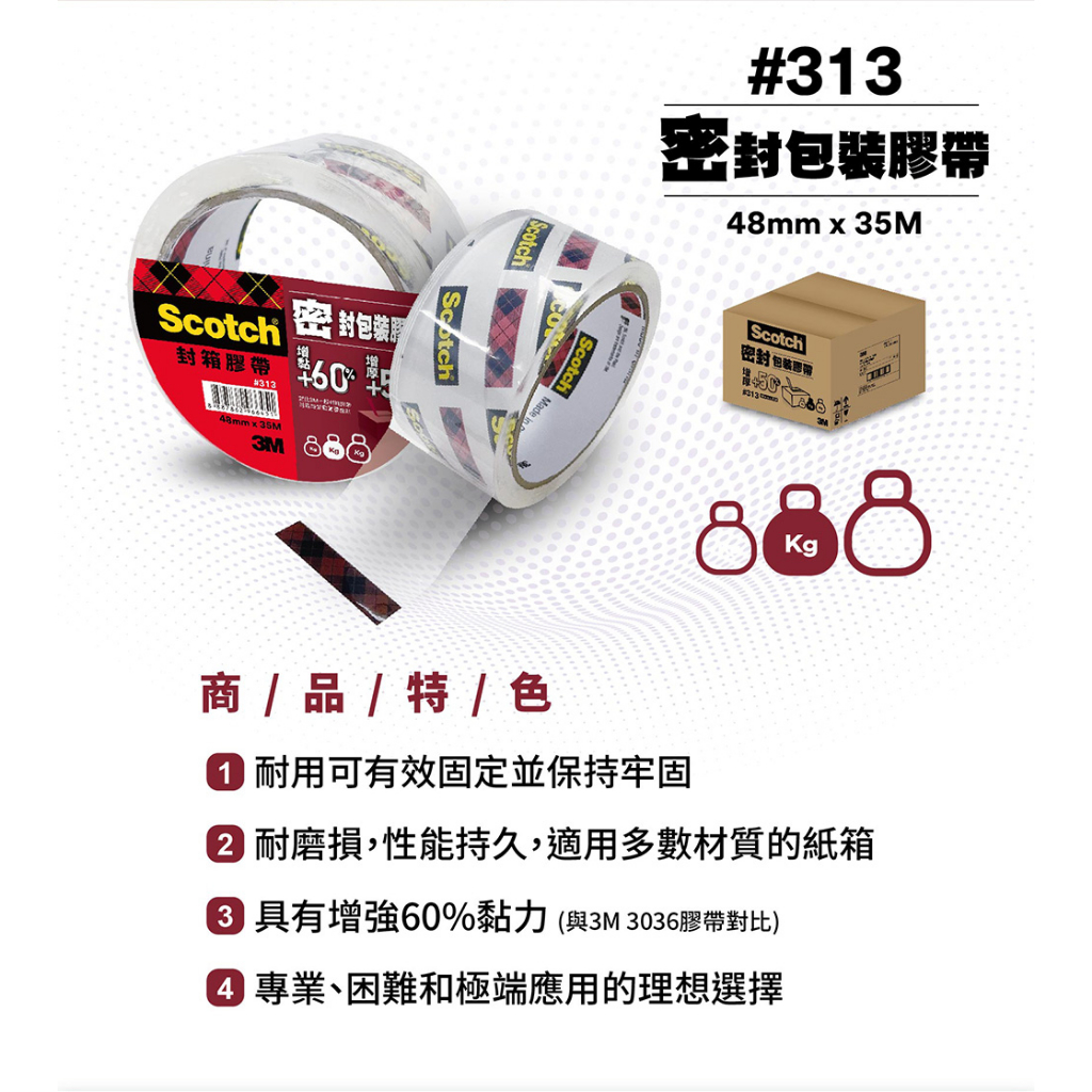 3M 313 Scotch 密封封箱透明膠帶-長途運送用(48MMX35M)6入|18入|2入Strings & Tapes3M 授權官方旗艦館