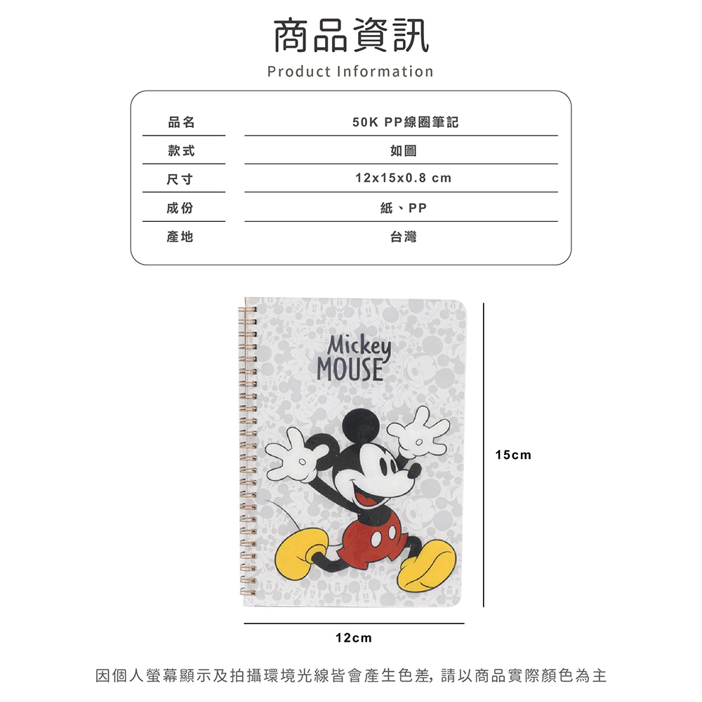 迪士尼(古典米奇)50KPP線圈筆記【5IP8】BT0366淺灰|米奇米妮|深灰|白底Notebooks & Notepads5IP8居家生活館