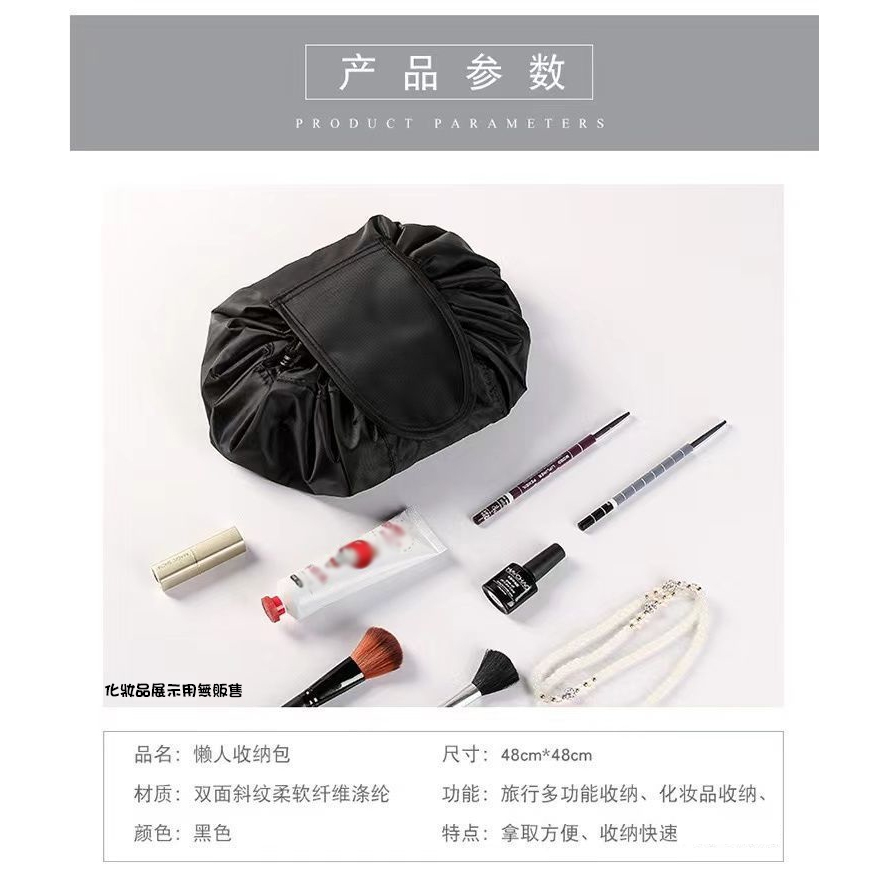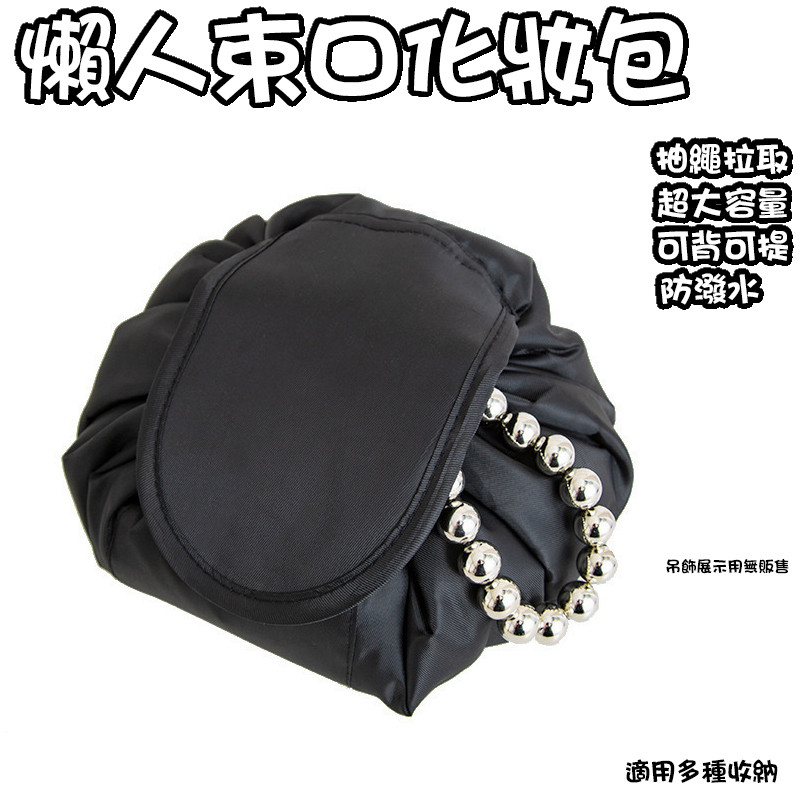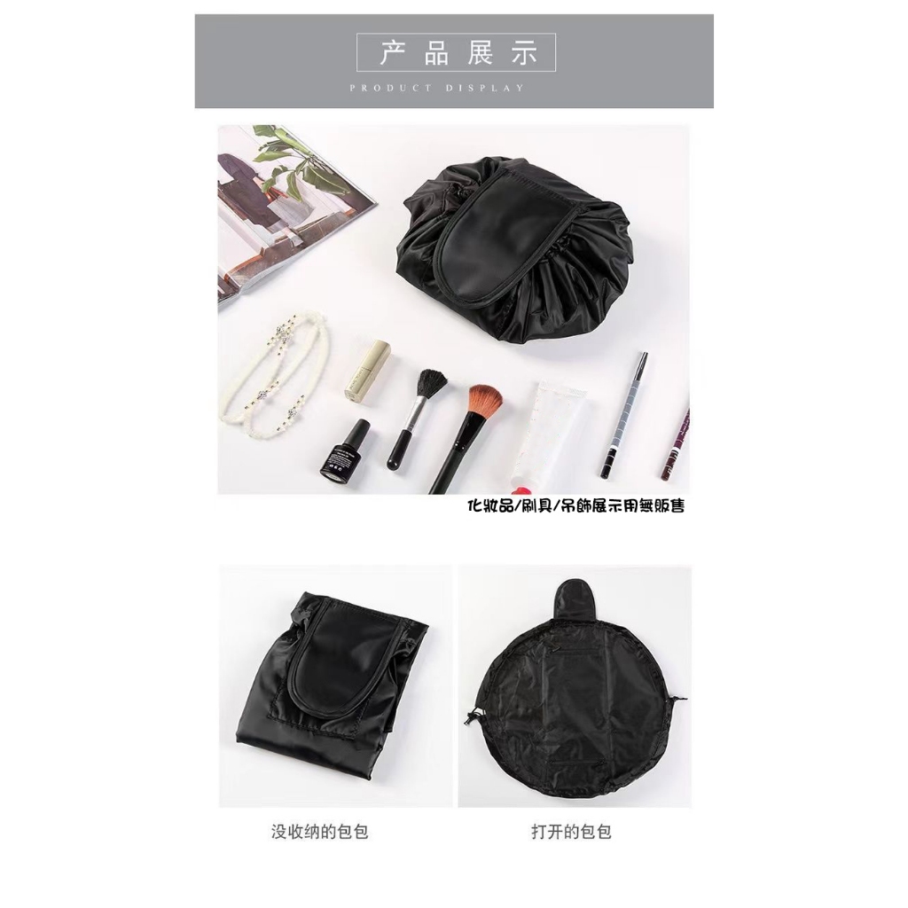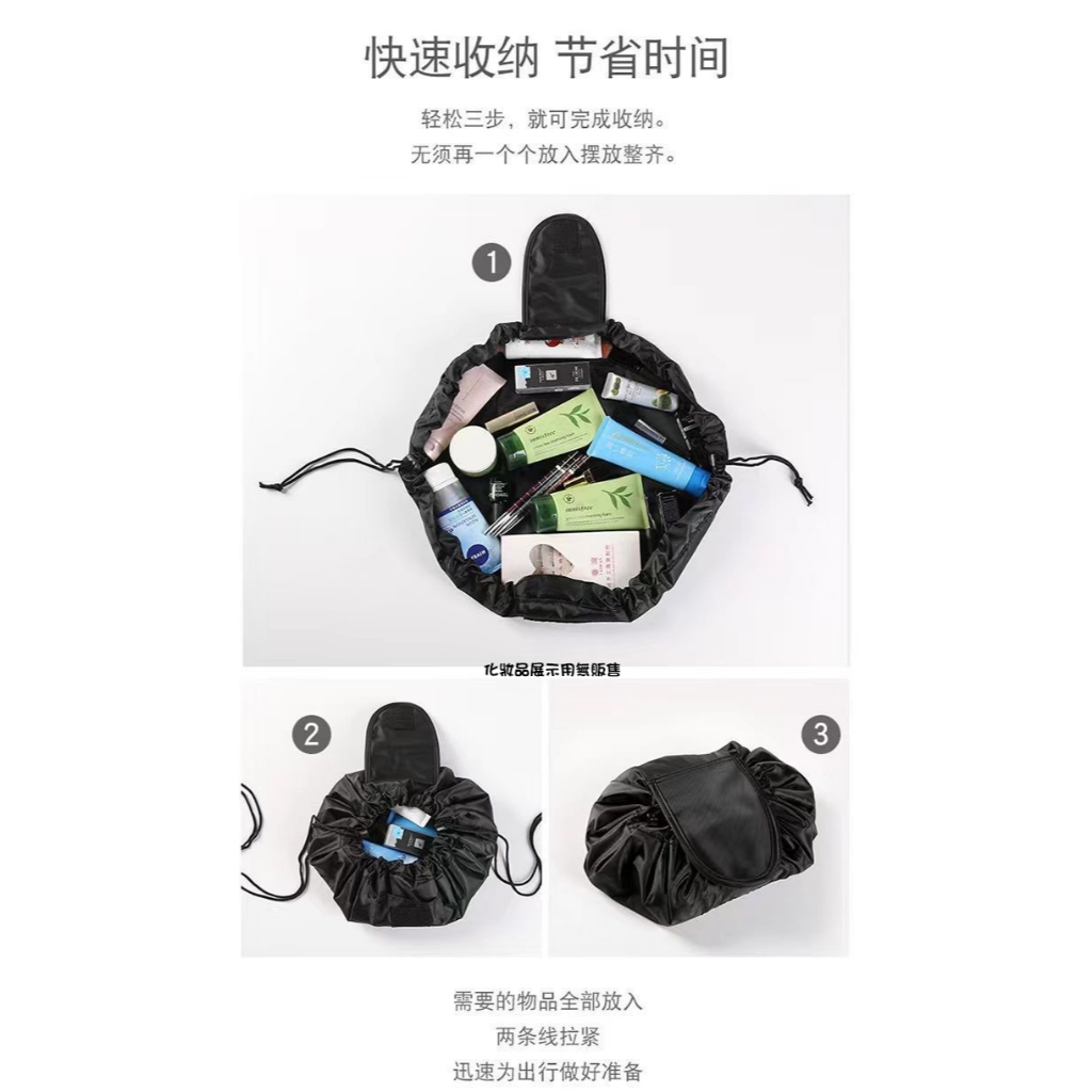 旅行多功能收納包 收納袋 化妝品收納包 化妝包 大容量化妝品收納包 束口化妝品收納袋 懶人抽繩化妝包 束口化妝包黑色Travel OrganizersADHIL旗艦店