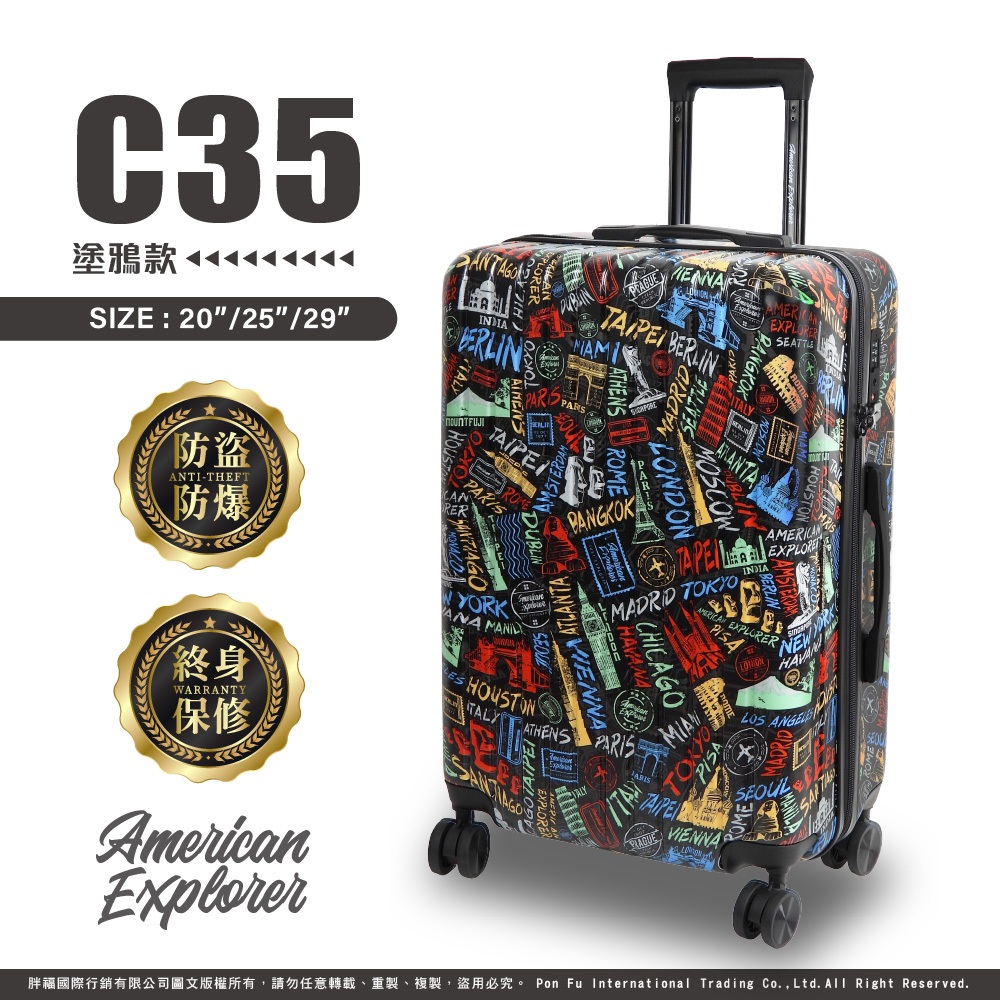 美國探險家 C35-PLUS 塗鴉款 行李箱 20吋 25吋 29吋 霧面 防刮 雙層防盜/防爆拉鍊 靜音雙排輪 大容量塗鴉款,20吋|塗鴉款,25吋|塗鴉款,29吋|塗鴉款,20吋+25吋|塗鴉款,25吋+29吋|塗鴉款,20吋+25吋+29吋|塗鴉款,20吋+29吋|塗鴉款,29吋+貓窩(噗噗校車)|塗鴉款,29吋+貓窩(日式拉麵)【熊熊先生】AE美國探險家/TURTLBOX特托堡斯/eminent行李箱旅行箱