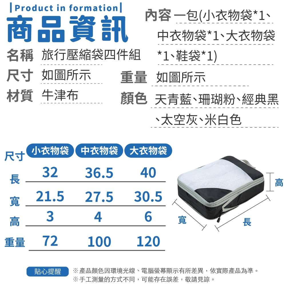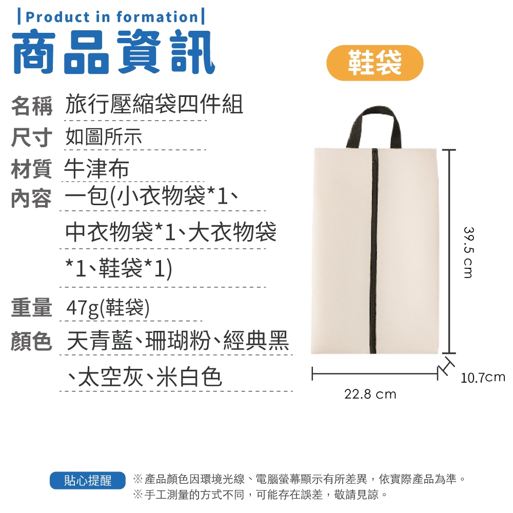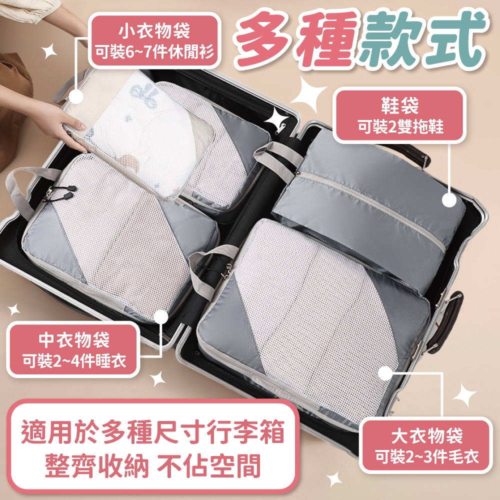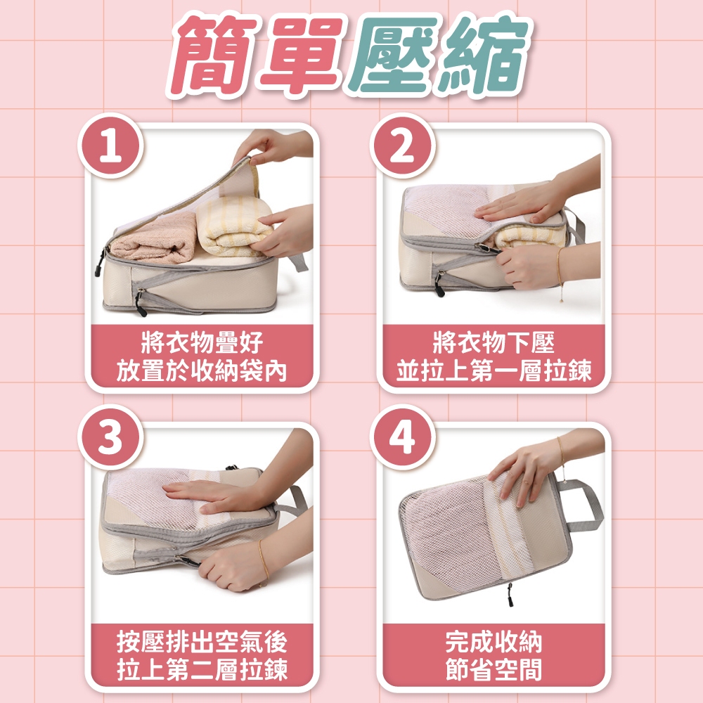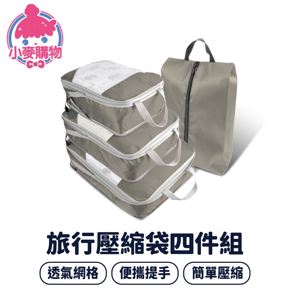 旅行壓縮袋四件組 收納袋 衣物壓縮袋 旅行收納袋 行李壓縮袋 衣服收納袋 旅行收納袋 收納包【小麥購物】【G672】珊瑚粉|天青藍|太空灰|米白色|經典黑Travel Organizers 小麥購物