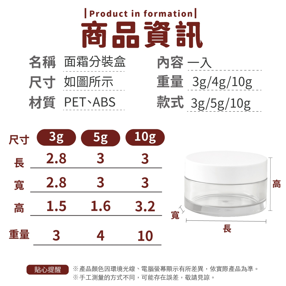 面霜分裝盒 面霜盒 分裝盒 分裝瓶 塑膠盒 旅行盒 乳霜盒 隨身瓶 保養品分裝【小麥購物】【G652】3g|5g|10gTravel Size Bottles & Containers 小麥購物