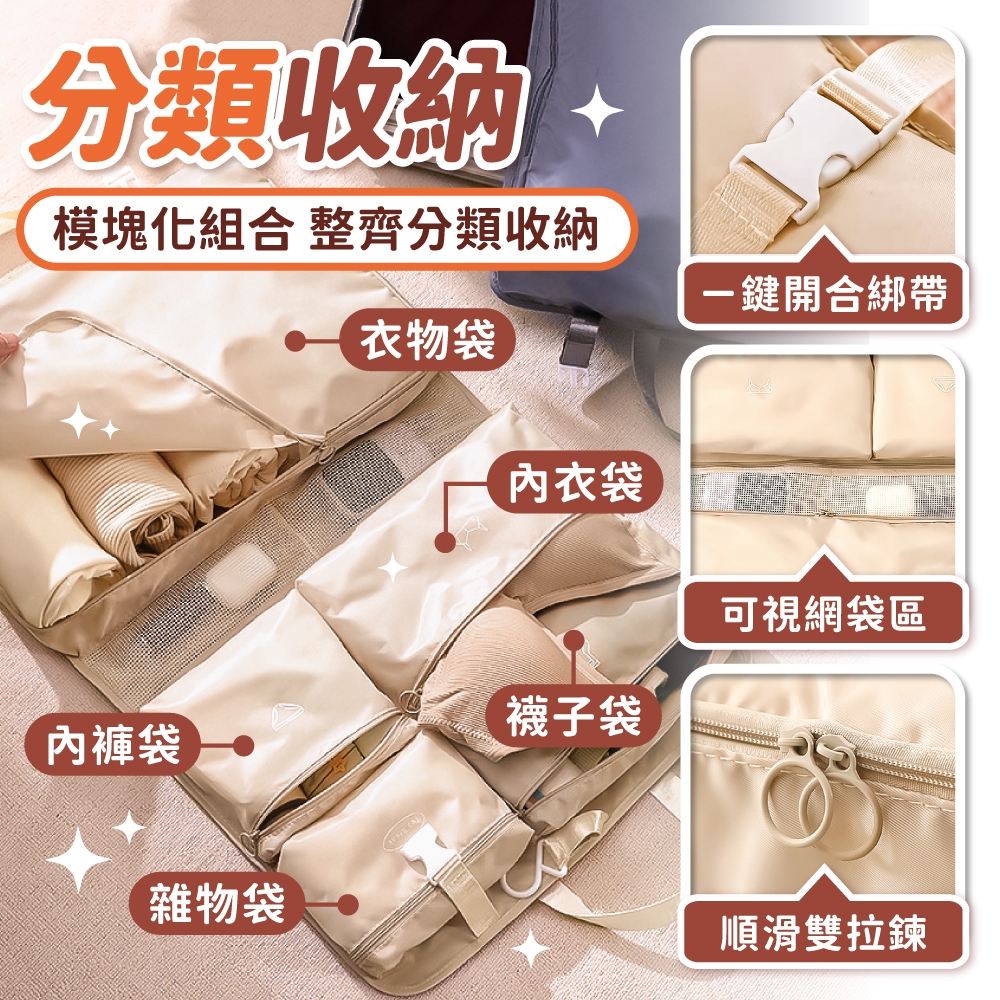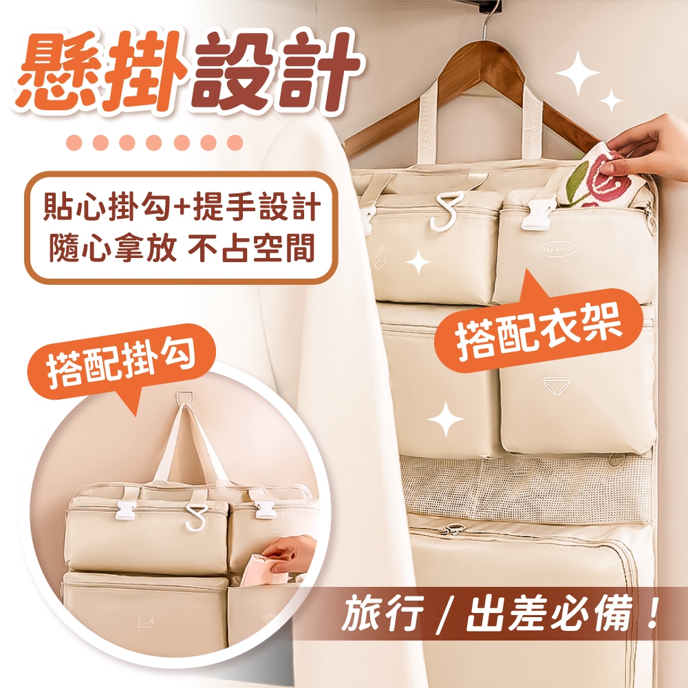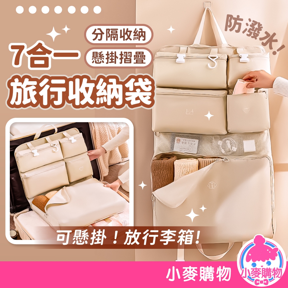 七合一旅行收納袋 吊掛式行李收納袋 收納掛袋 懸掛式收納袋 行李收納袋 旅行收納包 收納袋 收納【小麥購物】【C606】質感灰|輕奢米|夢幻粉Travel Organizers 小麥購物