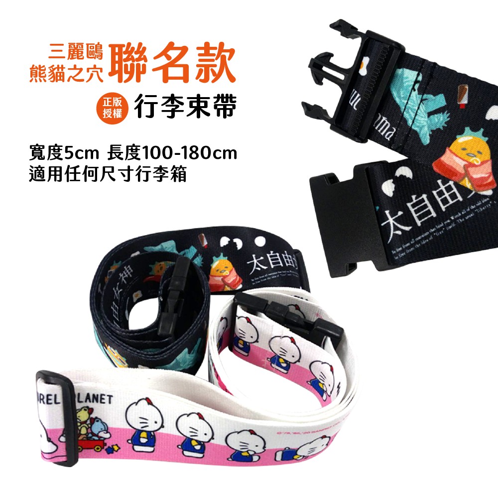三麗鷗聯名 戽斗星球 太自由女神 hello kitty 行李束帶 蛋黃哥 二款任選 【5ip8】PT0060太自由蛋黃哥(黑)|戽斗KT(白)Luggage Straps5IP8居家生活館