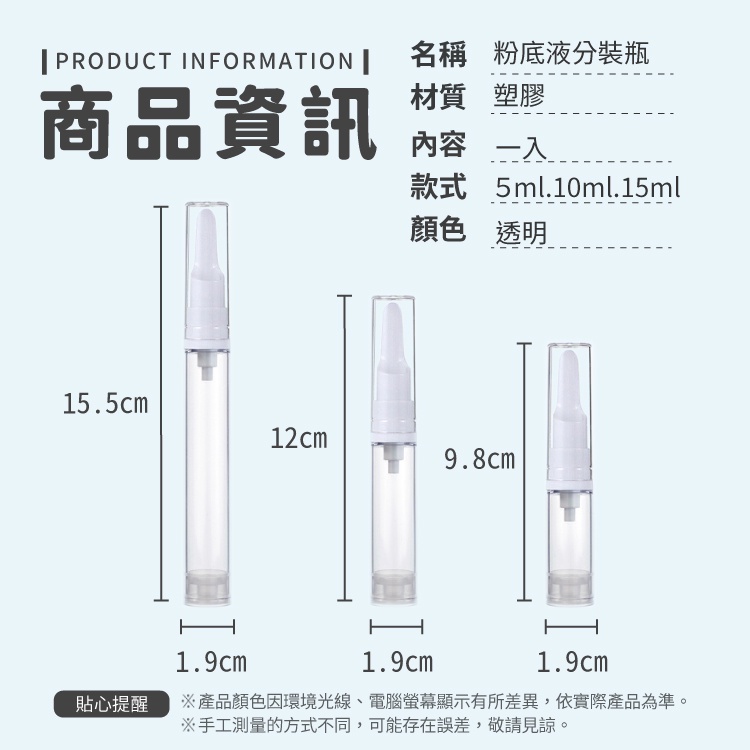 粉底液分裝瓶 分裝瓶 旅行 多功能 旅行分裝瓶 化妝品分裝瓶 真空瓶 外出 便攜 真空按壓瓶【小麥購物】【Y249】5ml|10ml|15mlTravel Size Bottles & Containers 小麥購物