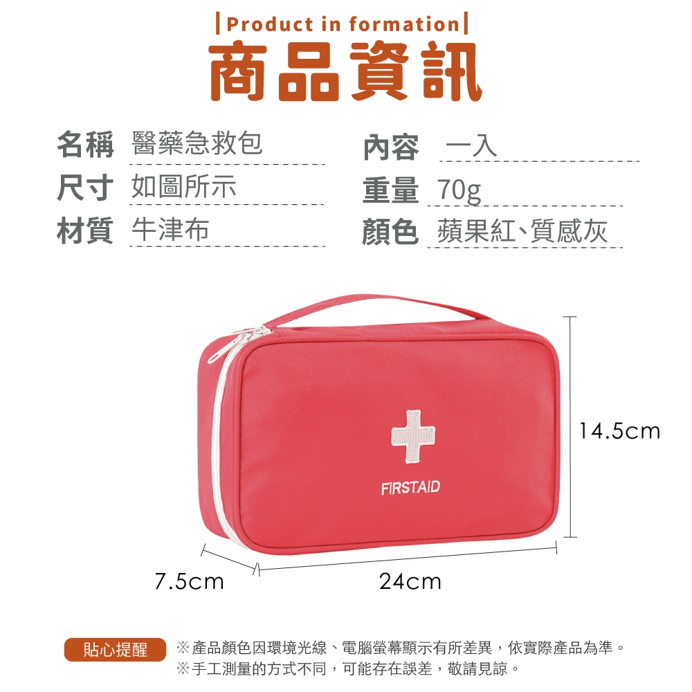 醫藥急救包 手提醫藥包 醫藥收納 隨身急救包 便攜醫藥包 家用急救包 儲備物資 急救 戶外旅行【小麥購物】【Y598】蘋果紅|質感灰Travel Organizers 小麥購物