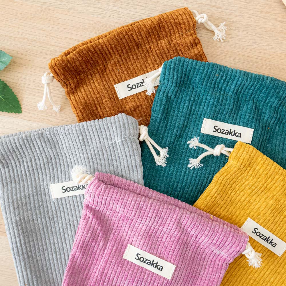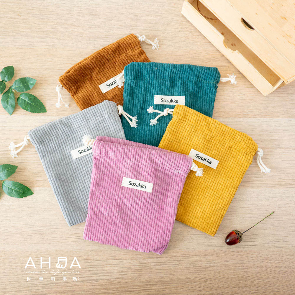 AHUA阿華有事嗎 純色燈芯絨束口袋 可裝墨子萬能充 行動電源收納袋 B0042 極簡純色 無印風收納袋 束口提袋咖色|灰色|紫粉色|綠|薑黃色Travel OrganizersAHUA 韓國襪子品牌旗艦店