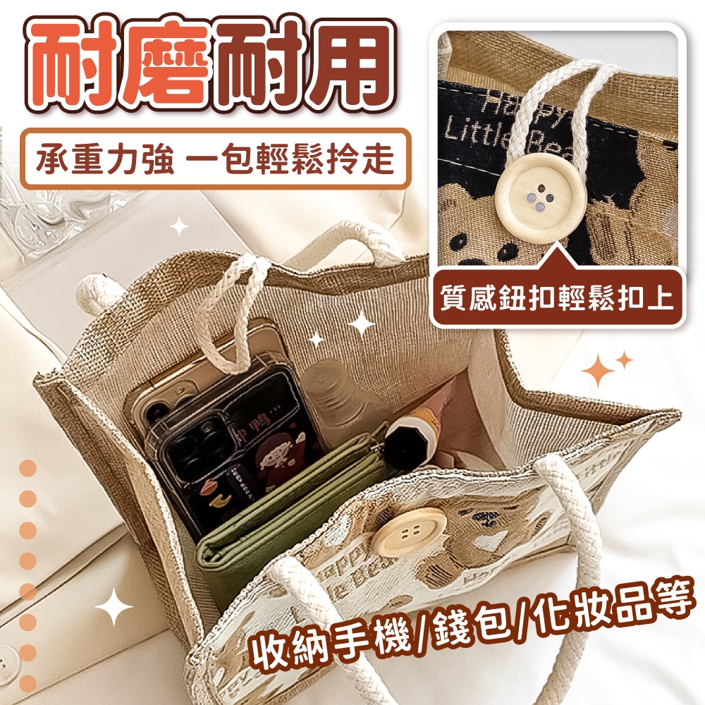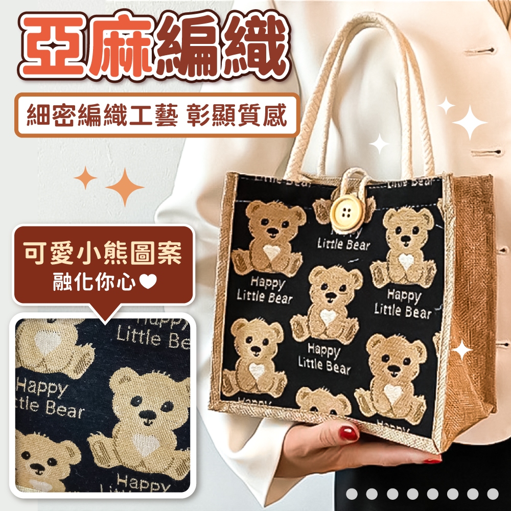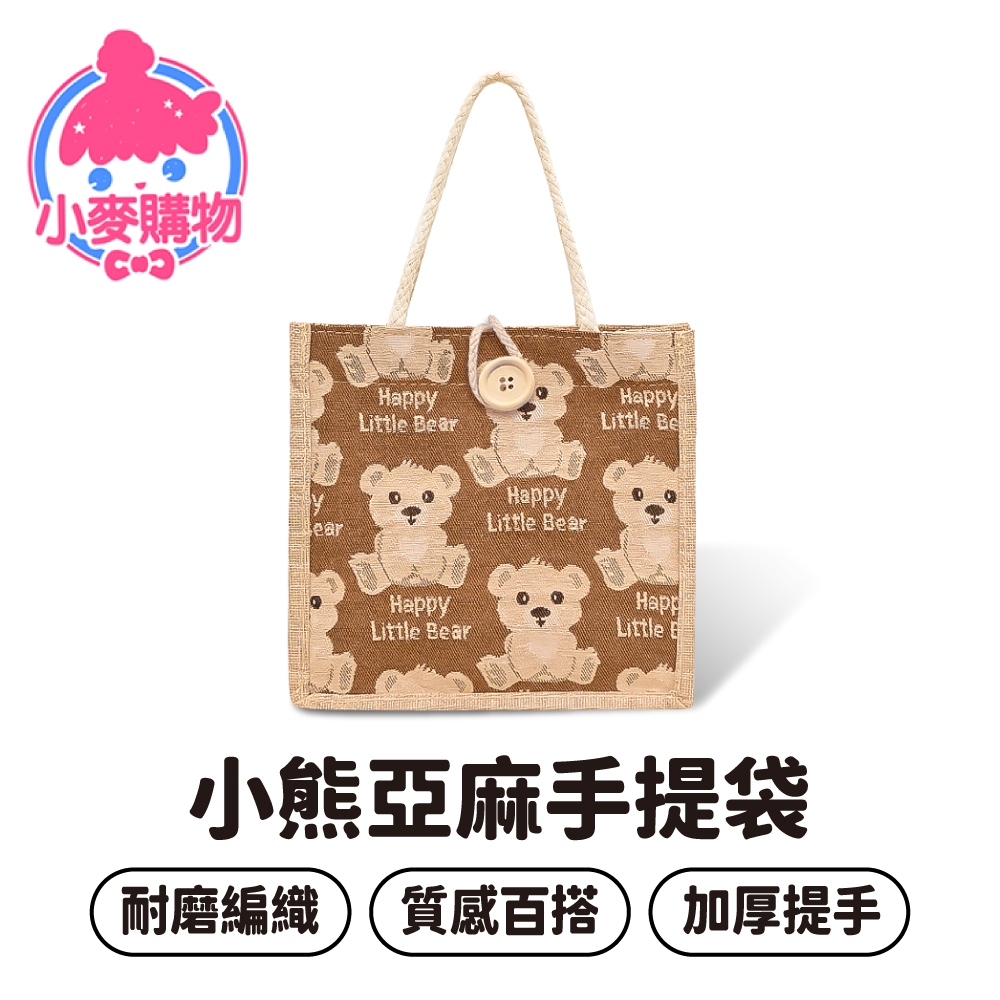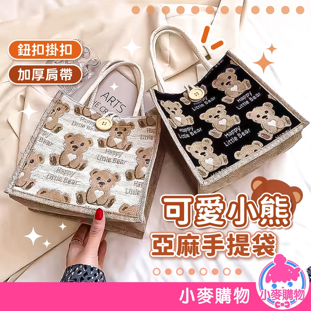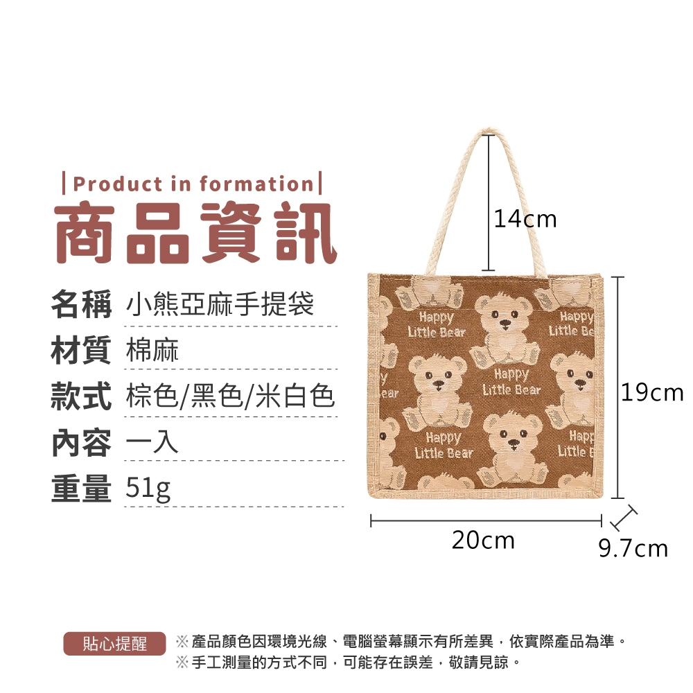 小熊亞麻手提袋 手提包 手提袋 小熊手提袋 亞麻手提袋 包包 午餐袋 便當包 環保提袋 外出包 【小麥購物】【G645】咖色|米白色|黑色 小麥購物