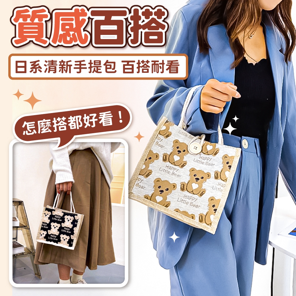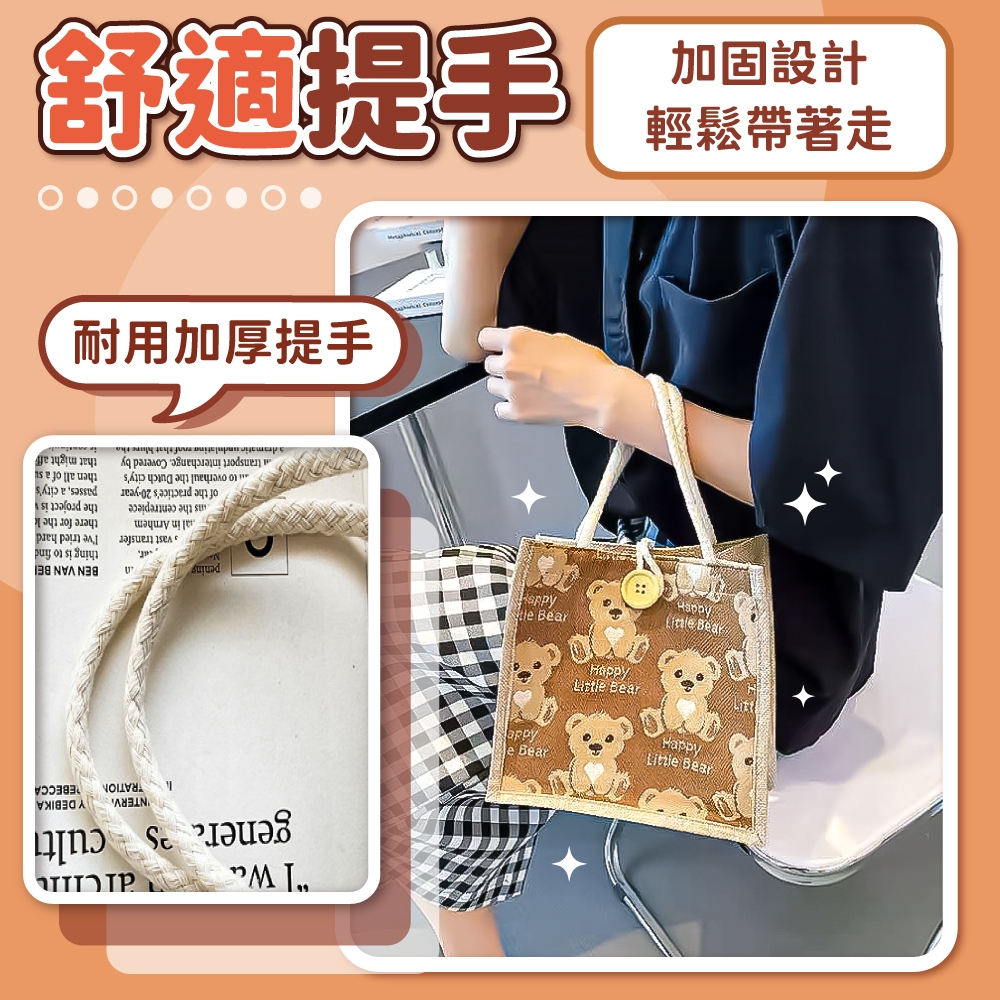 小熊亞麻手提袋 手提包 手提袋 小熊手提袋 亞麻手提袋 包包 午餐袋 便當包 環保提袋 外出包 【小麥購物】【G645】