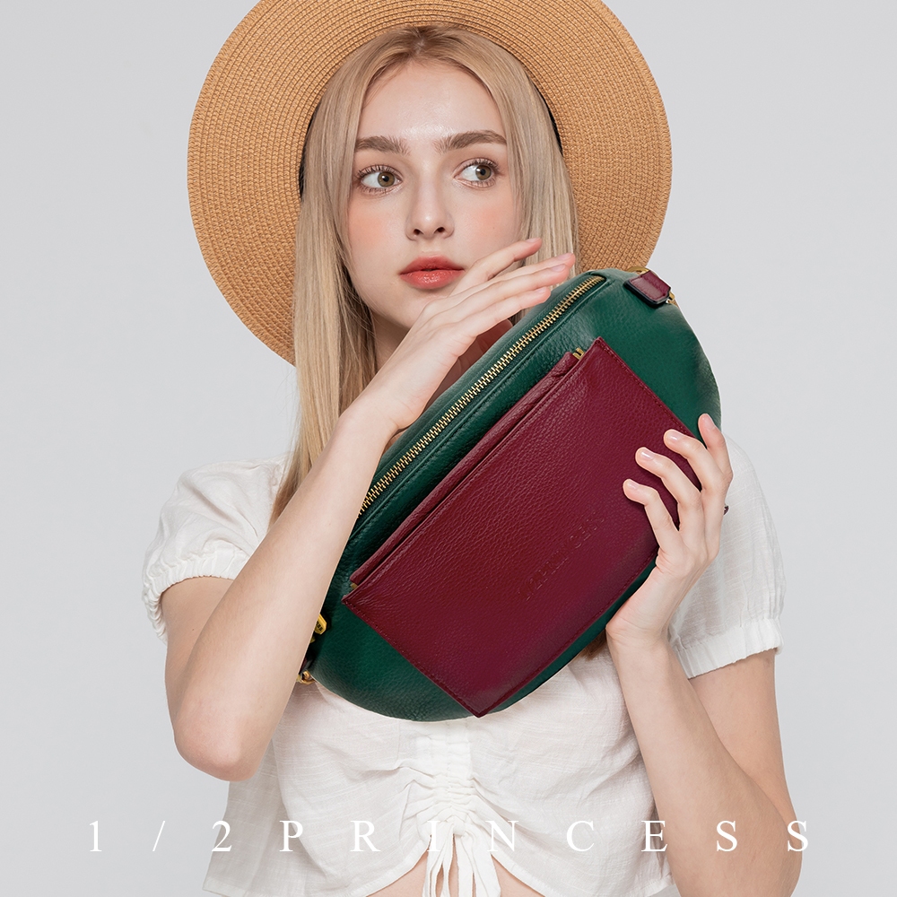 1/2Princess精品館甩紋牛皮芭芭菈兩用斜胸包【A9028】酒紅朱砂|復古紅綠|薰衣草|黑酒紅|深灰灰|深藍暗紅1/2princess