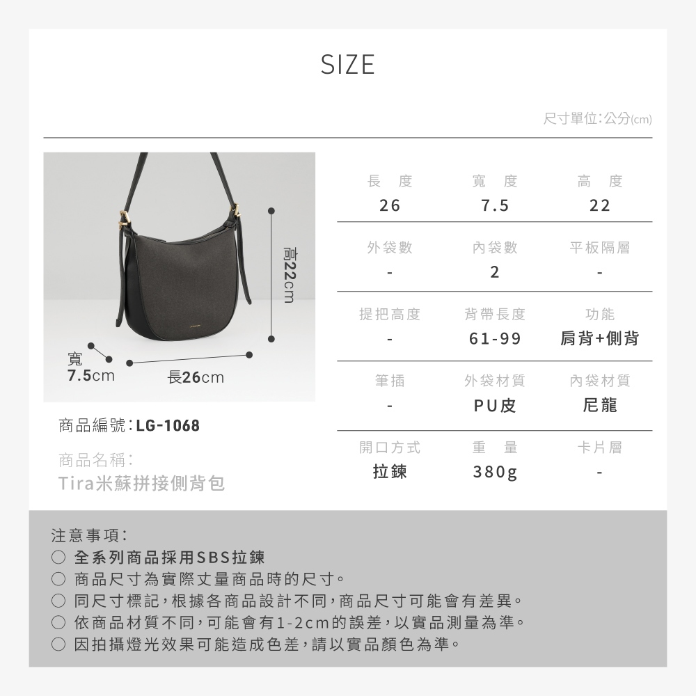 74ounce Tira米蘇拼接側背包[LG-1068-Q2-W]黑|可可|奶油74ounce