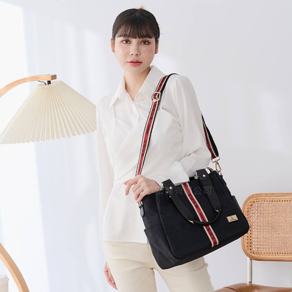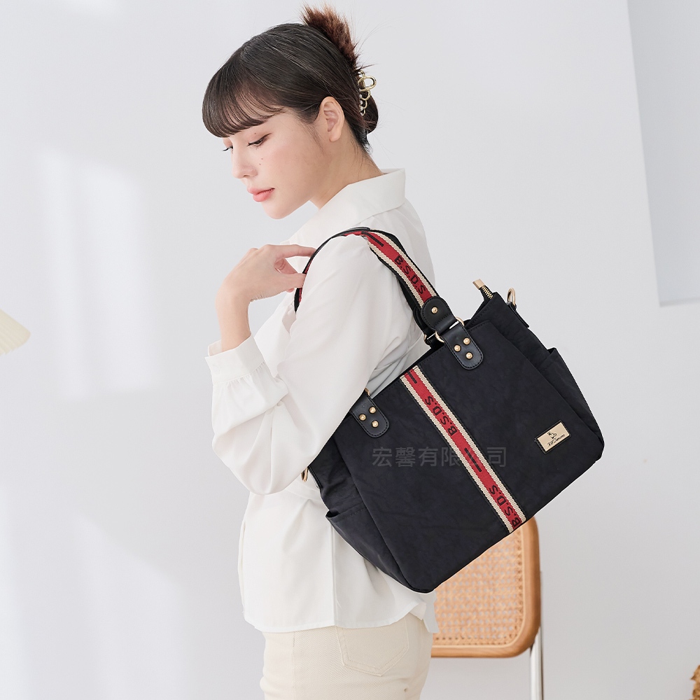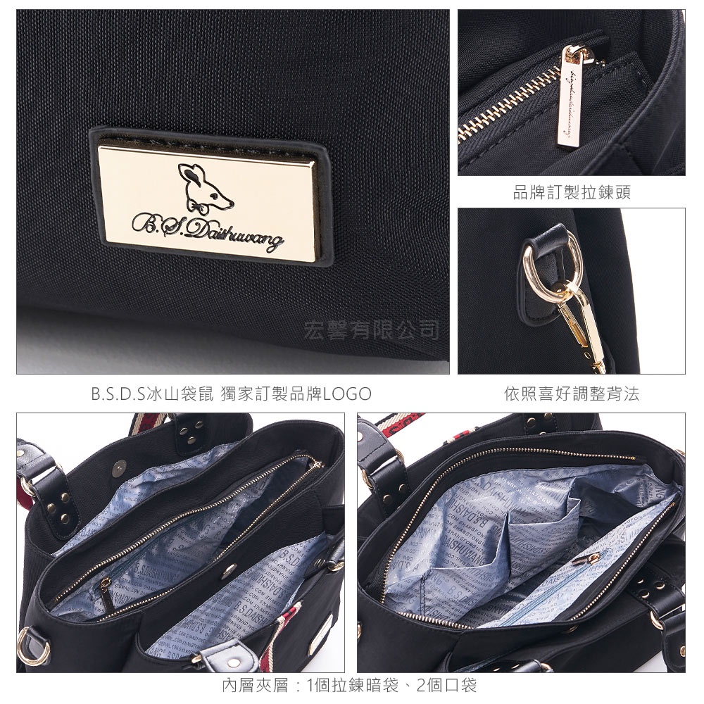 B.S.D.S冰山袋鼠 – 非常莓好 – 織帶拼接多層兩用托特包 – 紅磚黑【8010-KR】紅磚黑B.S.D.S冰山袋鼠