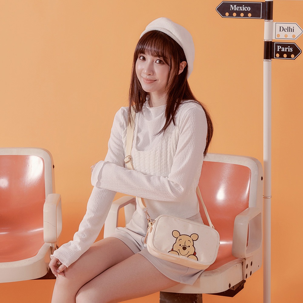【Disney】小熊維尼萌萌頭-側背包-奶油黃 PTD23-E5-62BG奶油黃BAG TO YOU 百達遊官方授權旗艦店