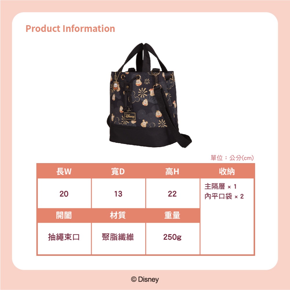 【Disney】迪士尼福倒翁束口水桶包-黑 PTD23-F3-51BK黑BAG TO YOU 百達遊官方授權旗艦店