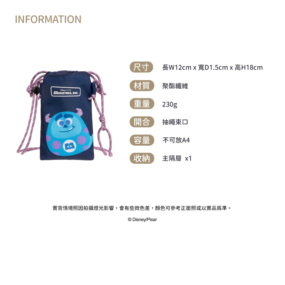 【DISNEY】福倒翁束口側背袋-毛怪 PTD25-G9-41SU【DISNEY】福倒翁束口側背袋-毛怪 PTD25-G9-41SUBAG TO YOU 百達遊官方授權旗艦店