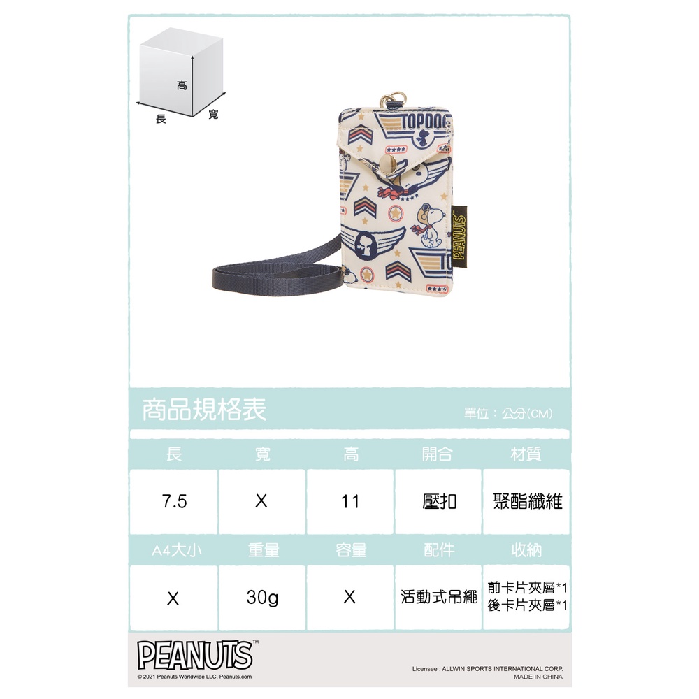 【OUTDOOR】SNOOPY聯名款王牌飛行員卡片套-米色 ODP21F11BG米BAG TO YOU 百達遊官方授權旗艦店