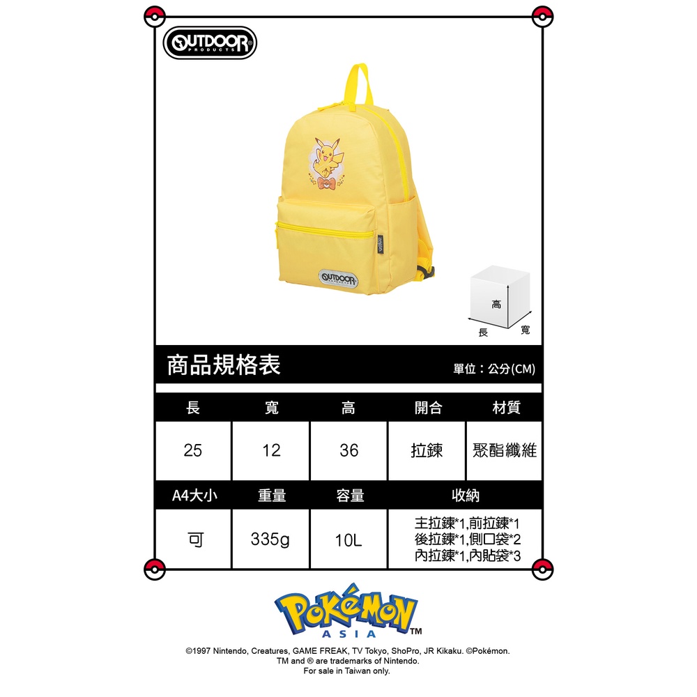 【OUTDOOR】Pokemon聯名款手繪風皮卡丘後背包-黃色 ODGO21B01YL黃色BAG TO YOU 百達遊官方授權旗艦店