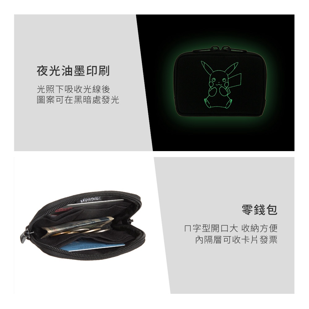 【OUTDOOR】Pokemon聯名款夜光皮卡丘零錢包-黑色 ODGO21A07BK黑色Coin Holders & PursesBAG TO YOU 百達遊官方授權旗艦店