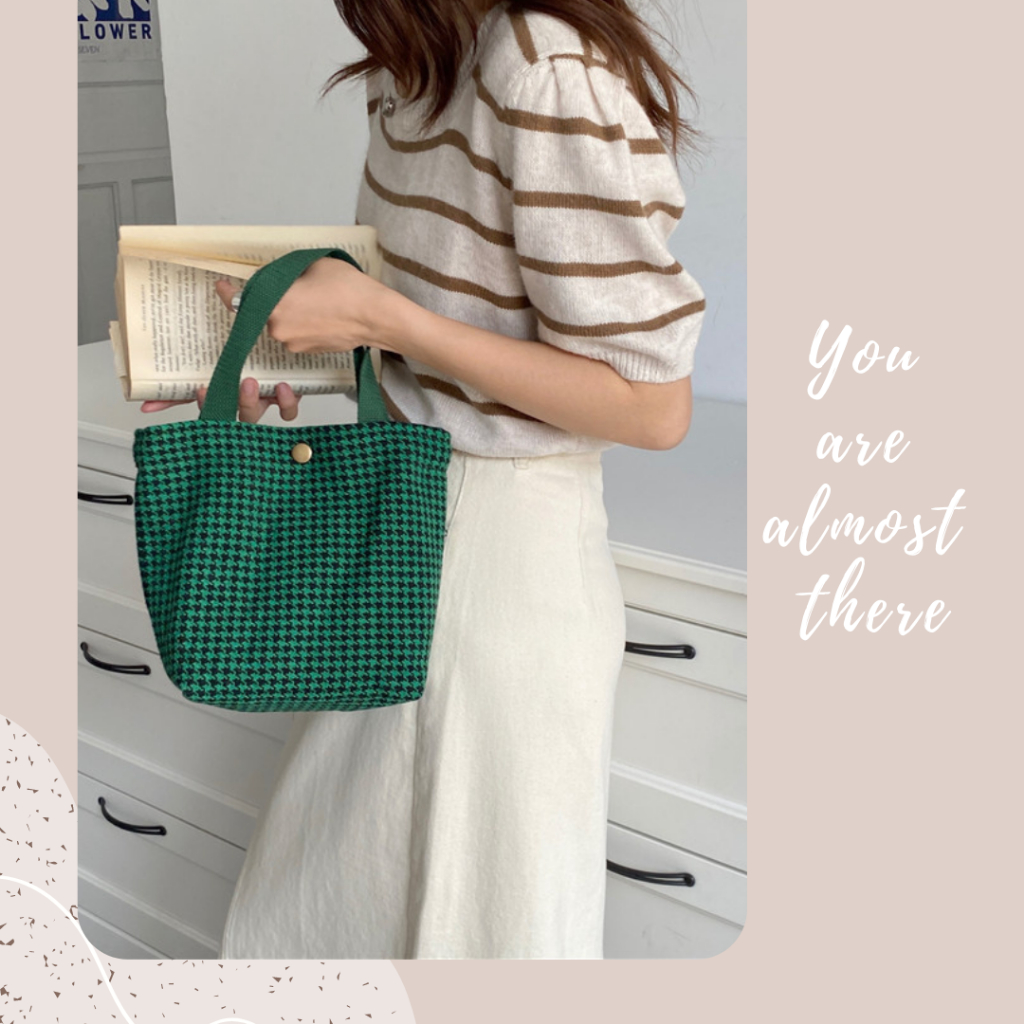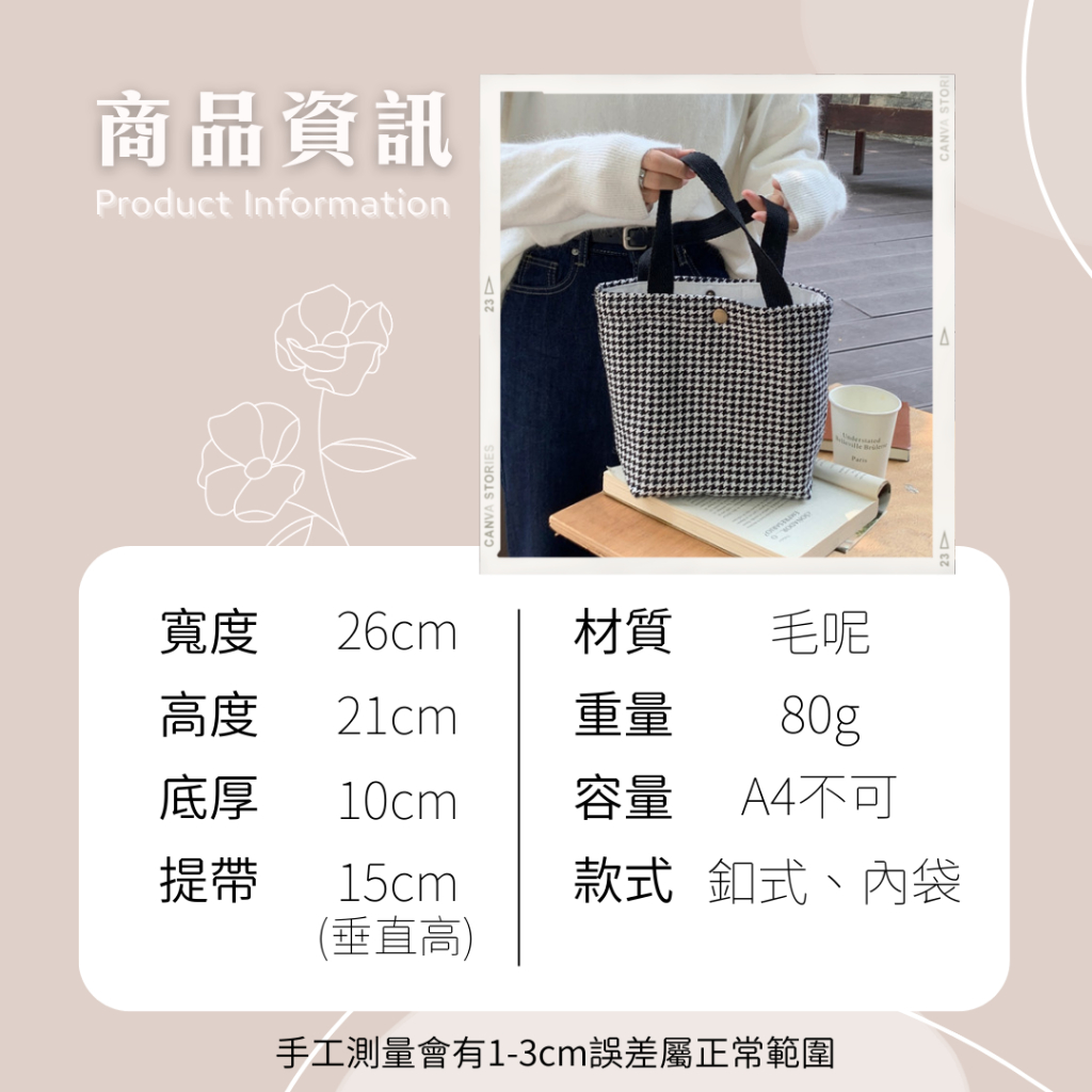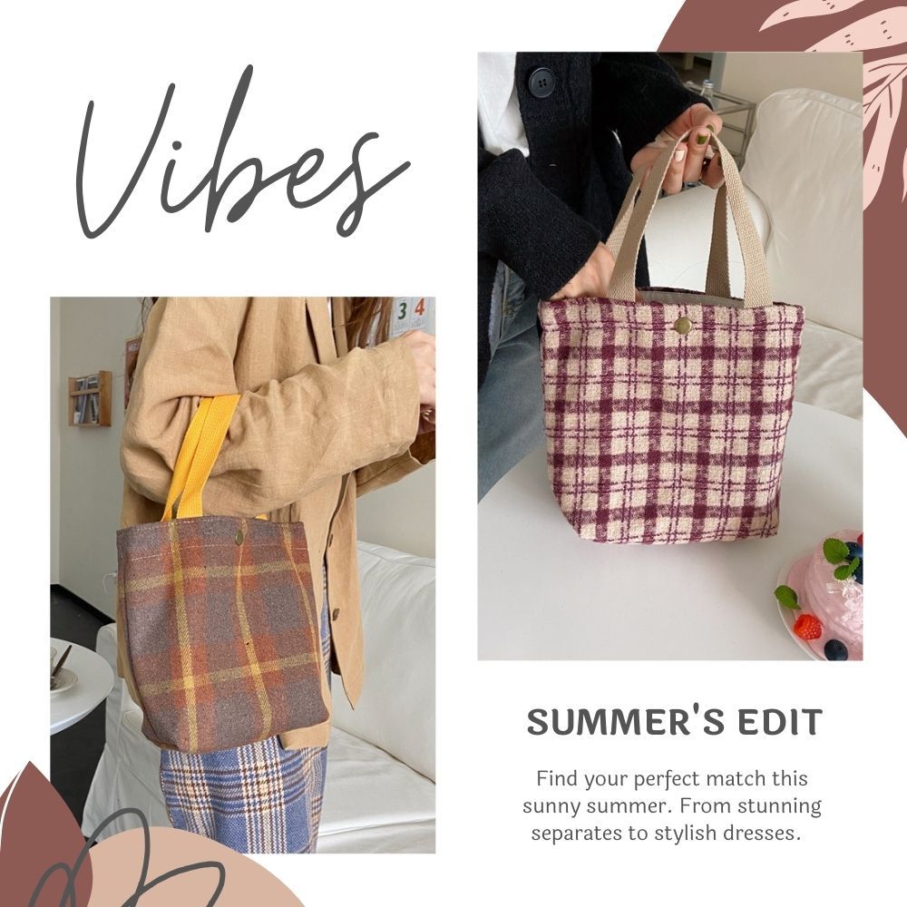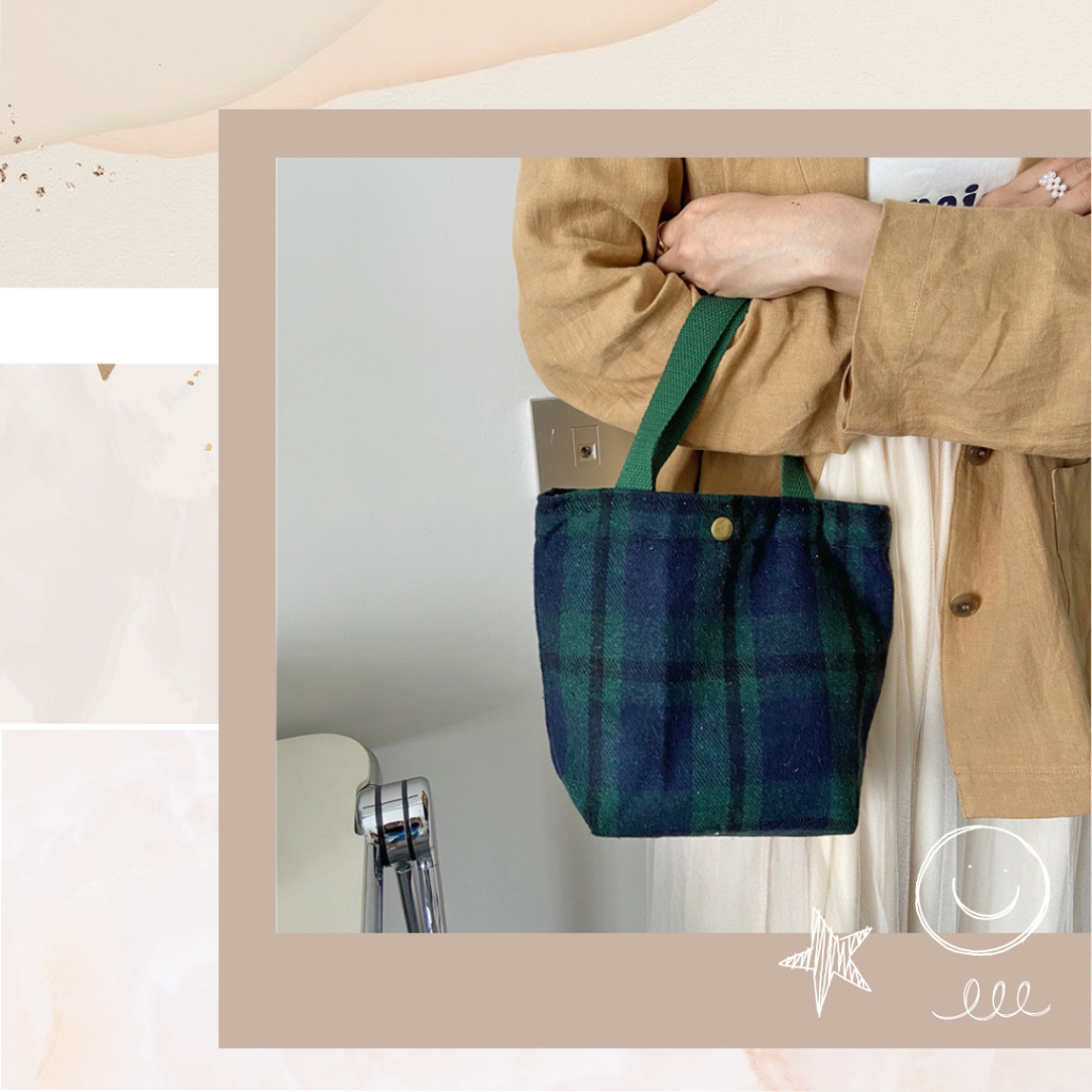 手提毛呢小布包 手提包 手提袋 便當袋 手拿包 餐袋 野餐袋 毛呢包 台灣現貨深咖千鳥大格|黑色千鳥格|綠色大格紋|經典黑格紋|黑色小香格|酒紅小香格|綠色千鳥格|復古黃棕格Bliss ~ 各國流行包款 泰國原廠化妝保養品