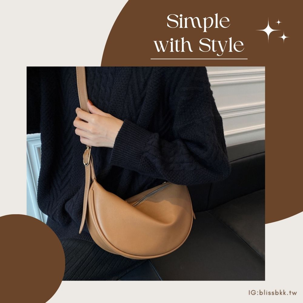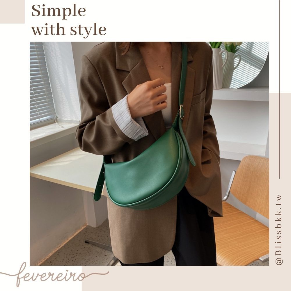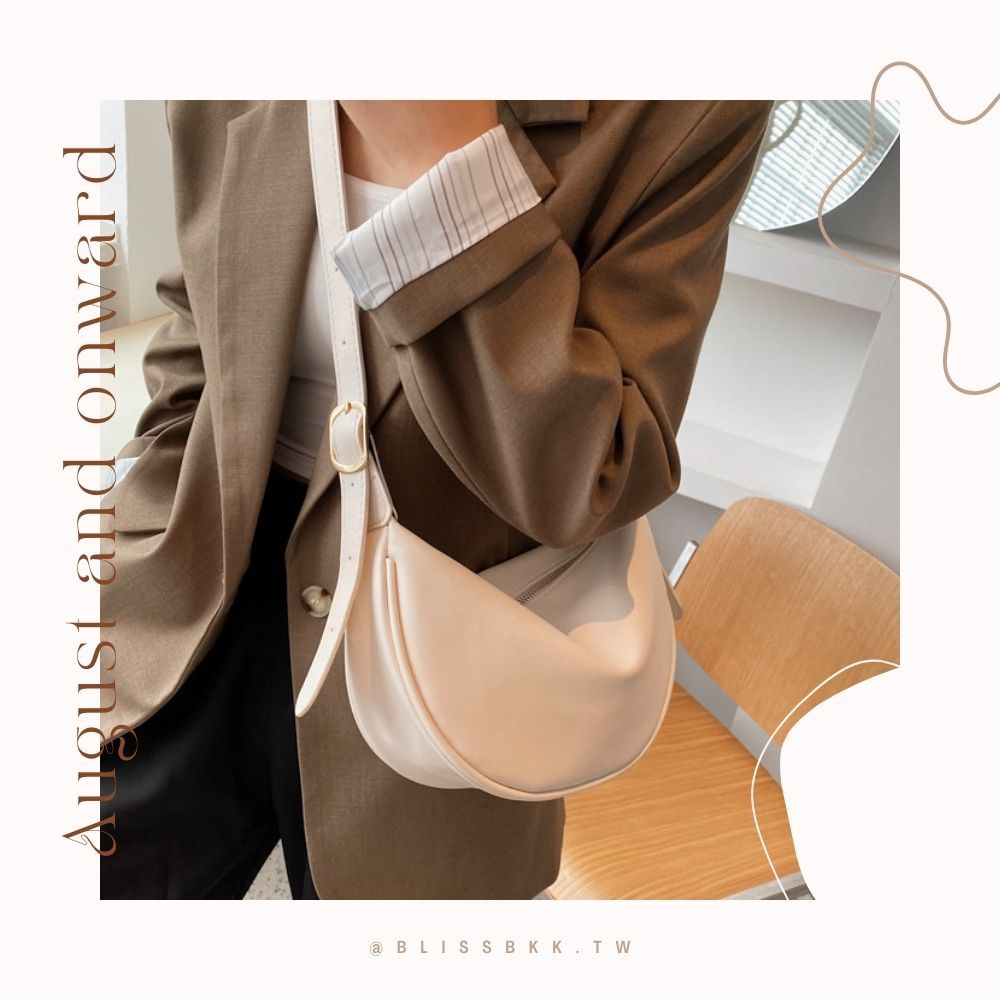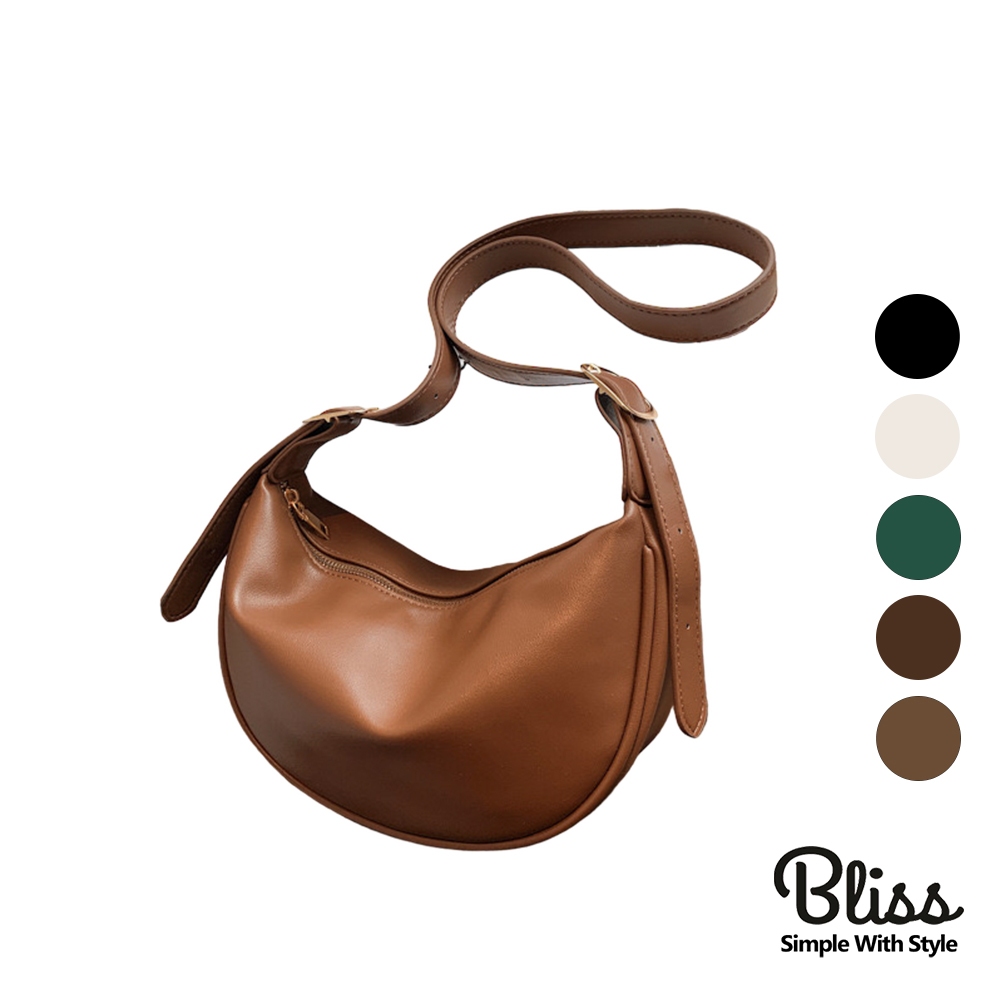 軟皮休閒側肩斜背月牙包 附品牌防塵袋 側背包 彎月包 月牙包 皮革包 斜背包 肩背包 馬鞍包 5色可選黑色|米白|綠色|深咖|棕色Bliss ~ 各國流行包款 泰國原廠化妝保養品