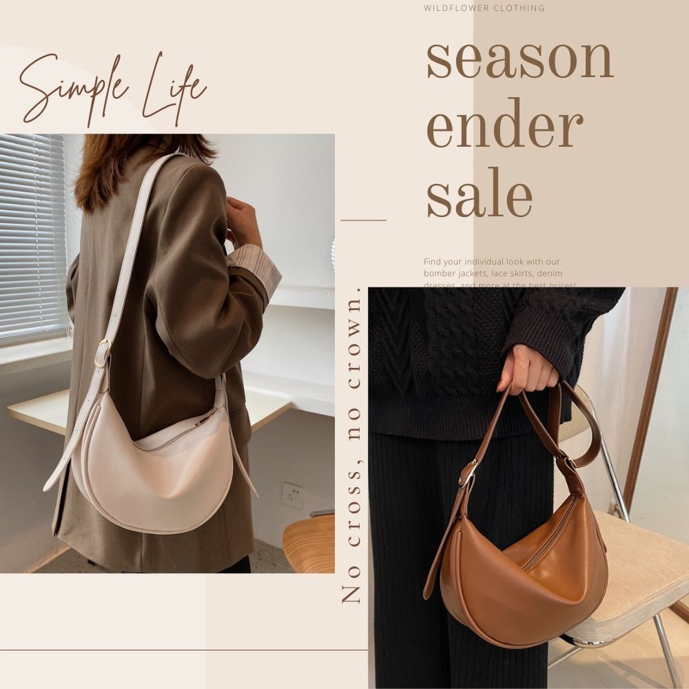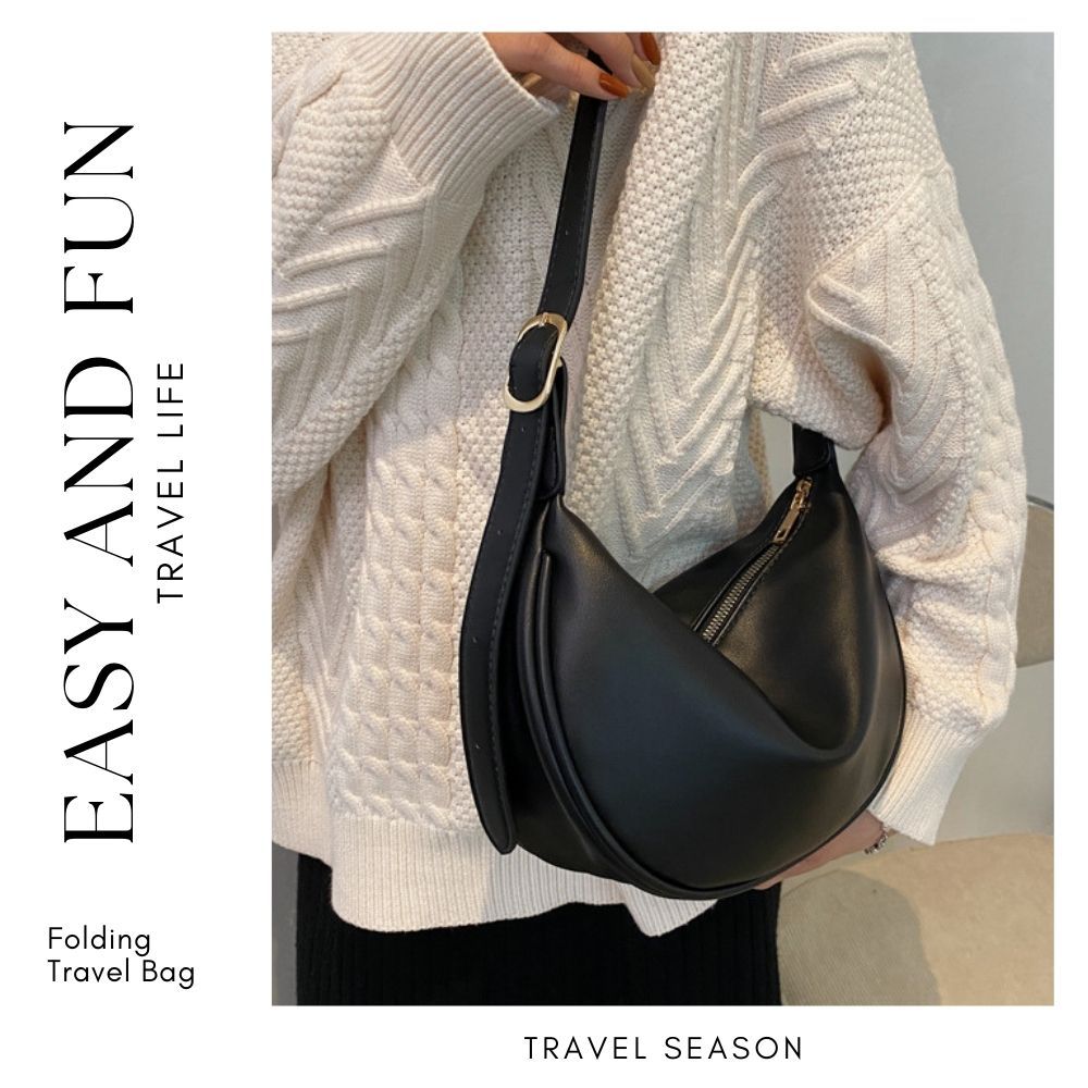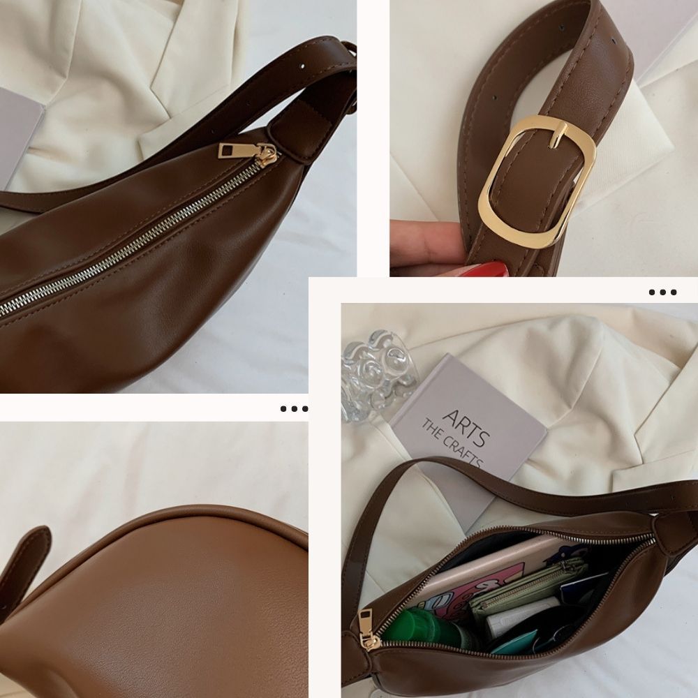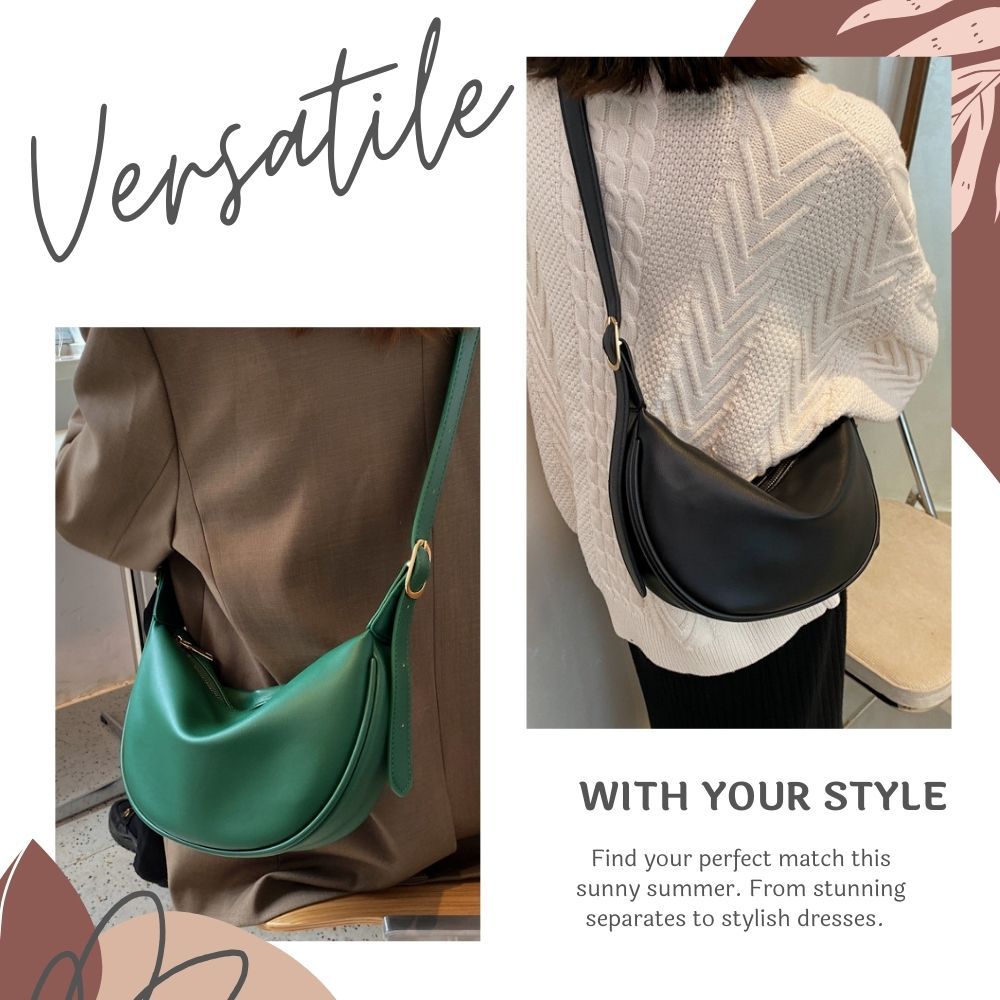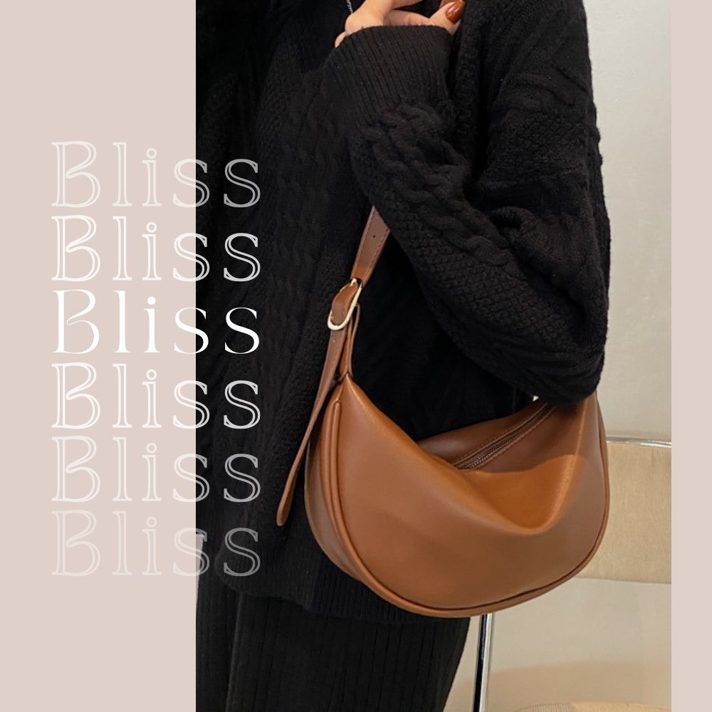 軟皮休閒側肩斜背月牙包 附品牌防塵袋 側背包 彎月包 月牙包 皮革包 斜背包 肩背包 馬鞍包 5色可選黑色|米白|綠色|深咖|棕色Bliss ~ 各國流行包款 泰國原廠化妝保養品