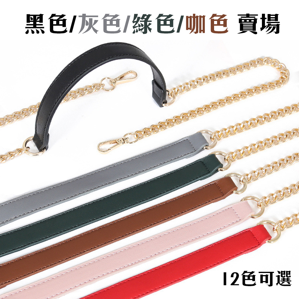 質感多色皮肩帶拼接鍊條背帶 (黑色/灰色/綠色/咖色) 鍊條背帶 包包背帶 12種顏色 有3種鍊子顏色 可客製化長度