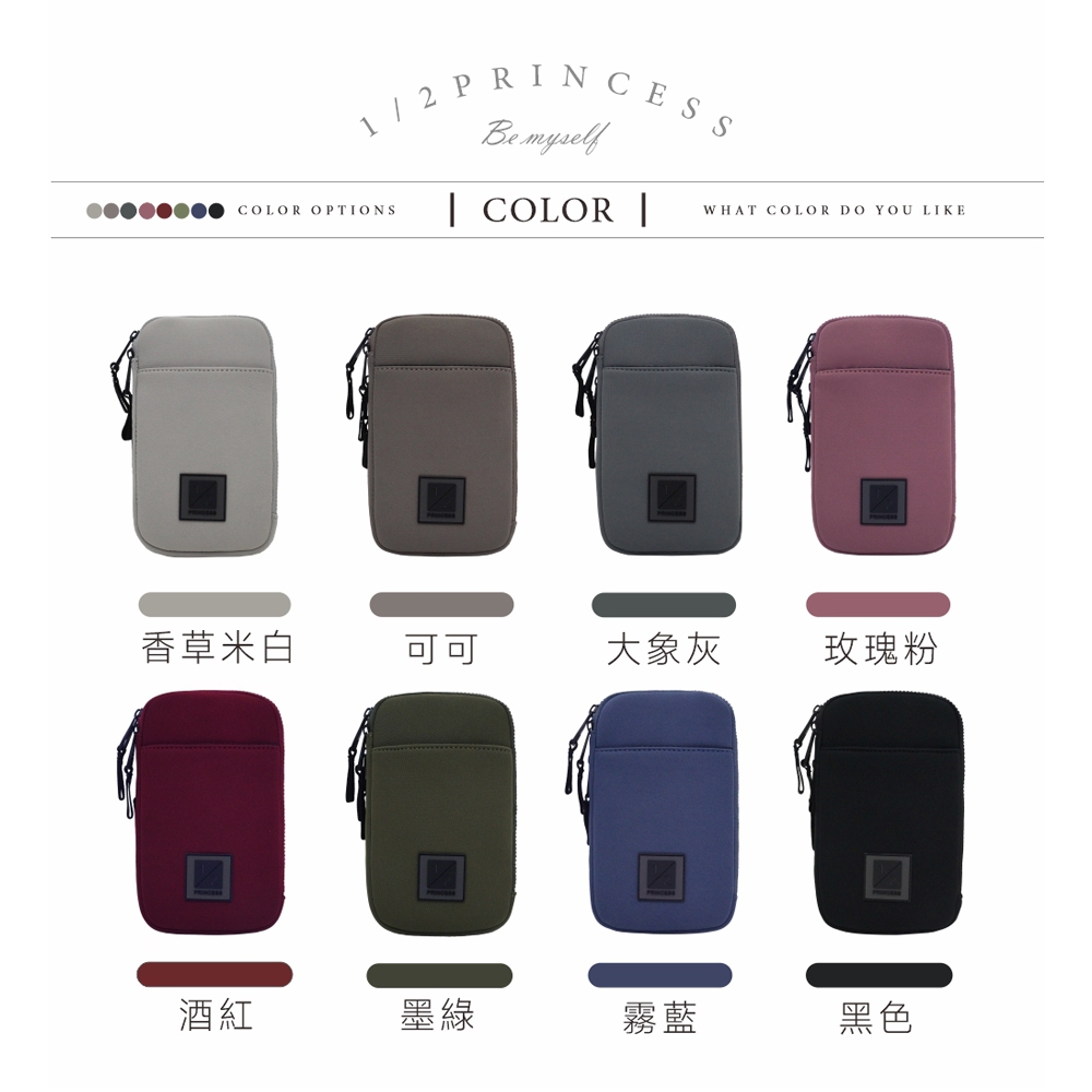 1/2Princess潛水布旅行隨身雙層小斜背【A2201】大象灰|可可|玫瑰粉|香草米白|酒紅|黑|墨綠|霧藍1/2princess