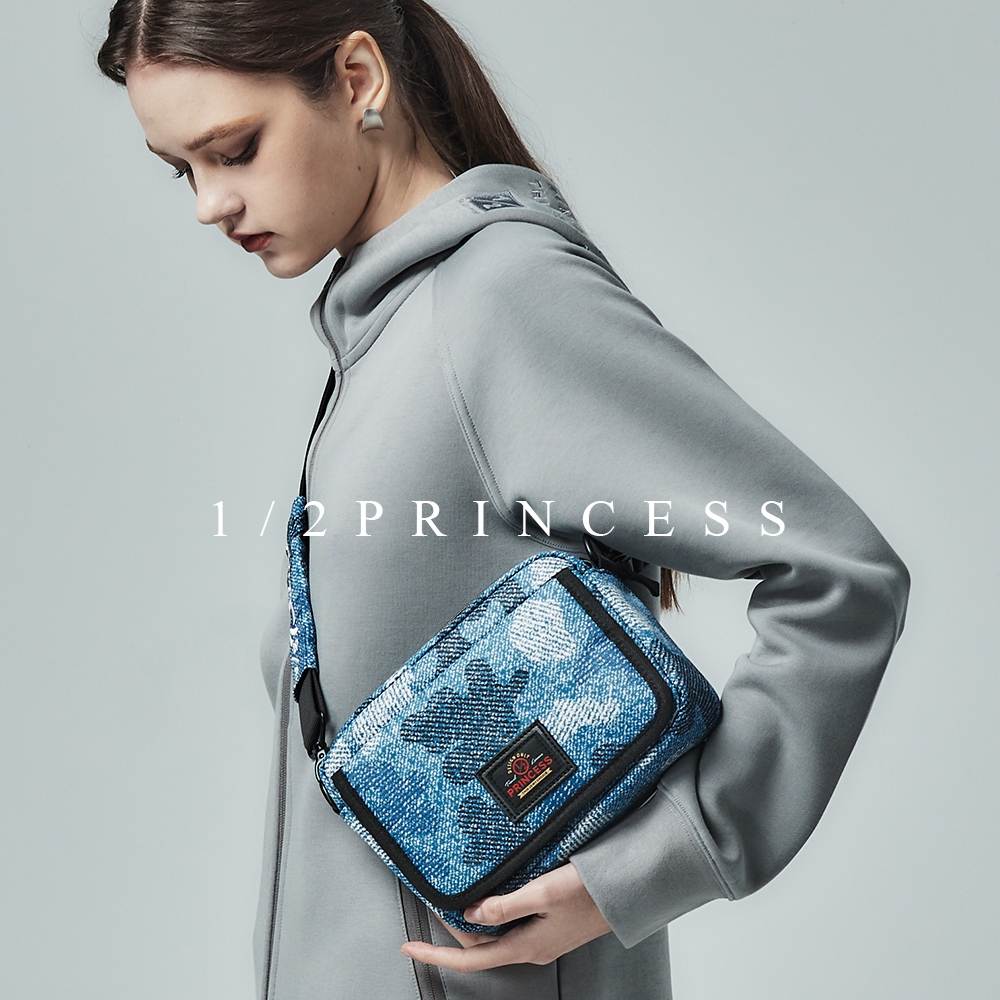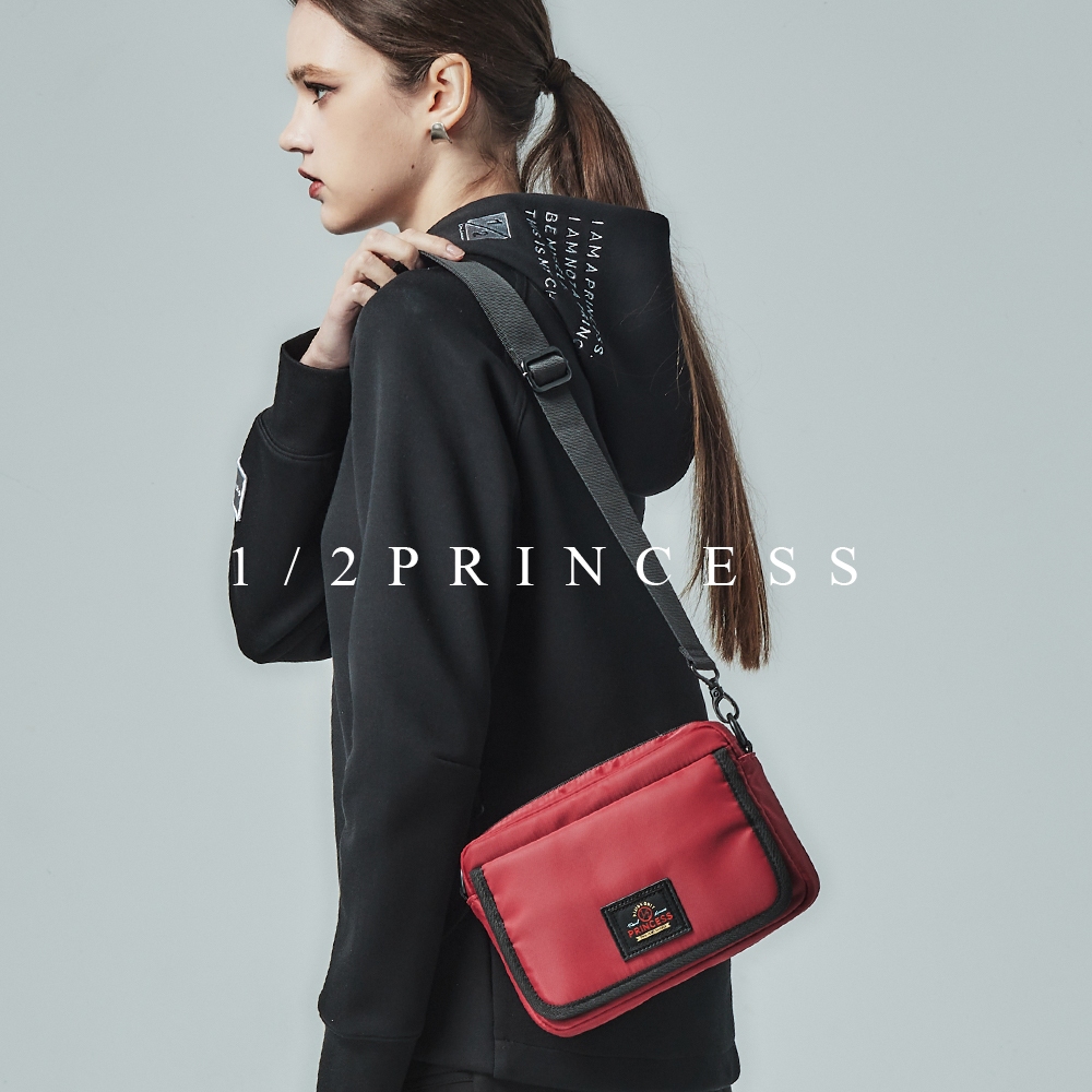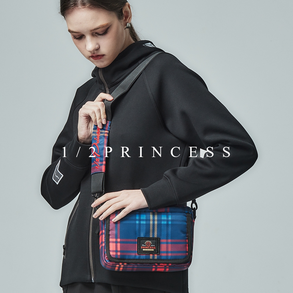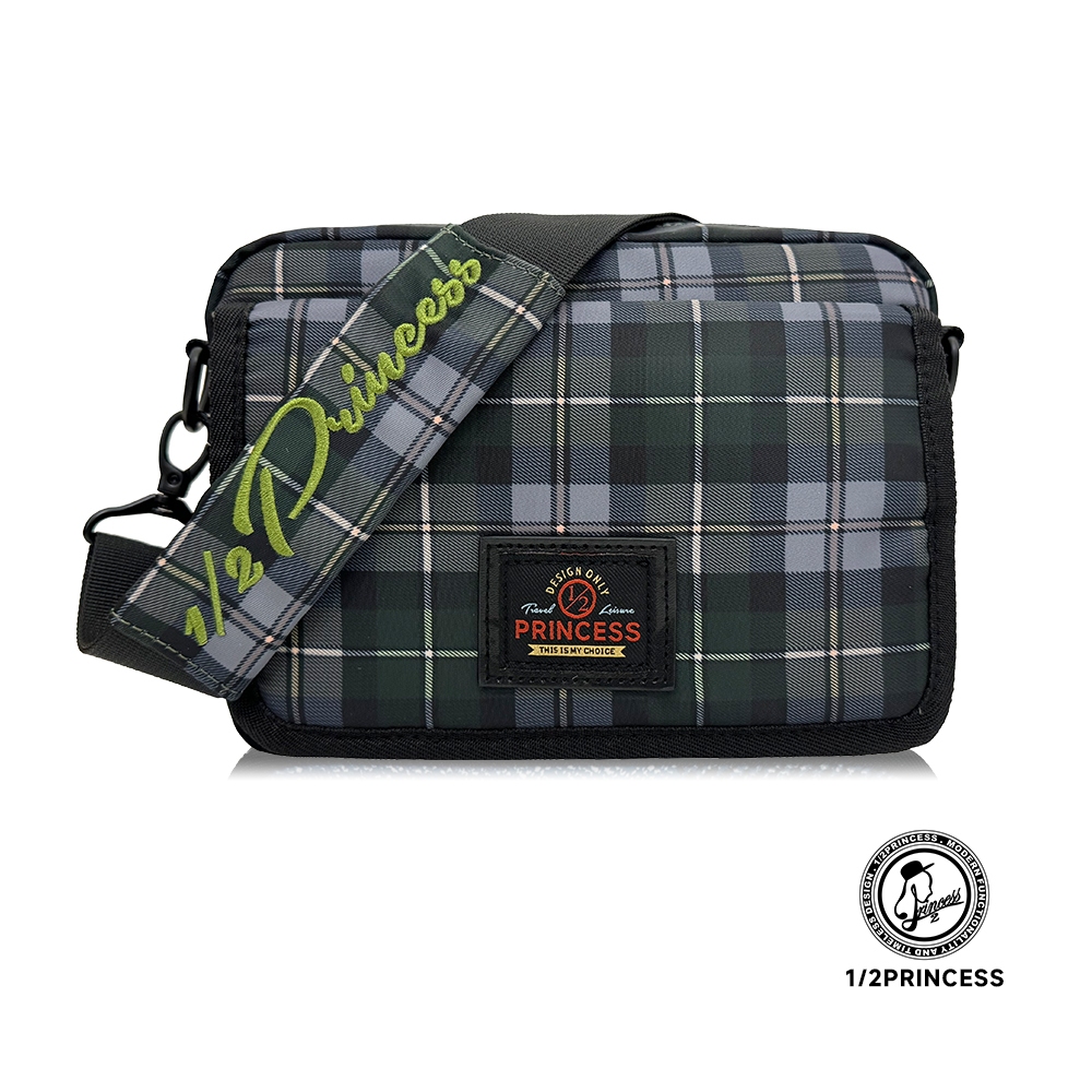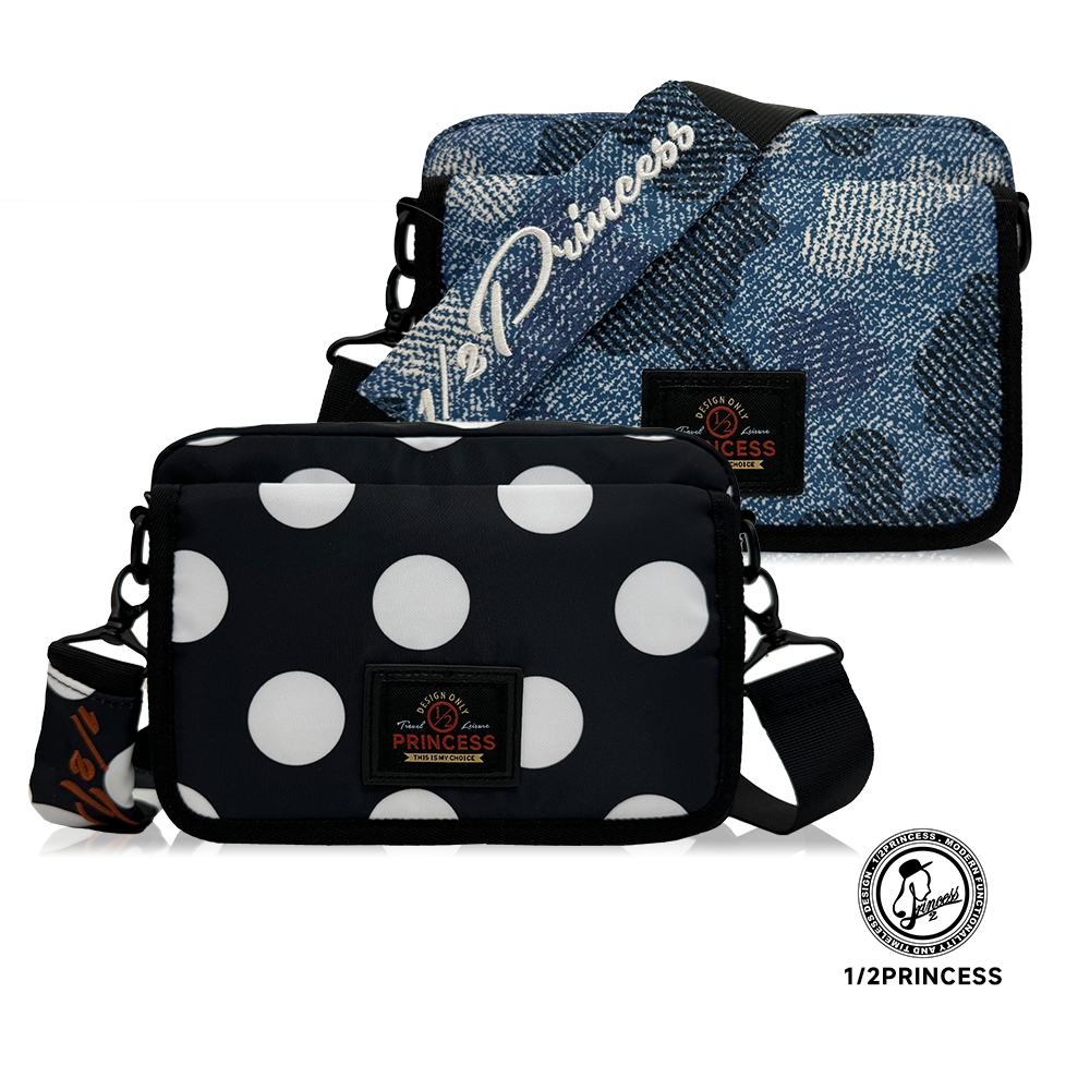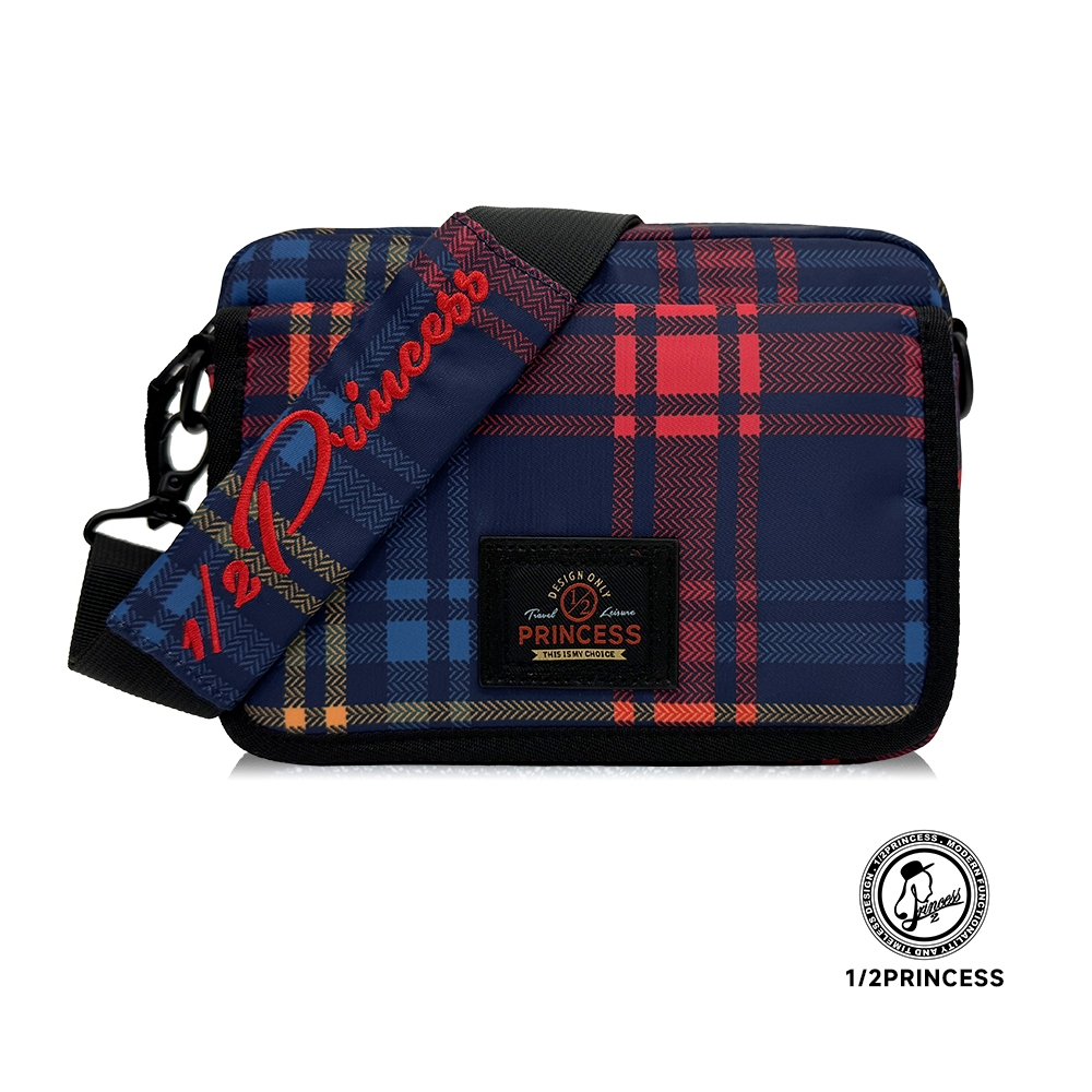 1/2princes尼龍胖男友斜背包【A0050】丹寧迷彩 |白玉點點 |墨灰綠格 |藍紅格 |櫻桃酒紅 1/2princess