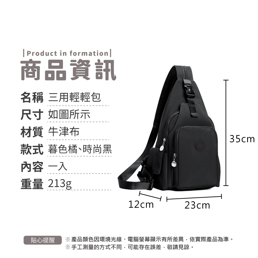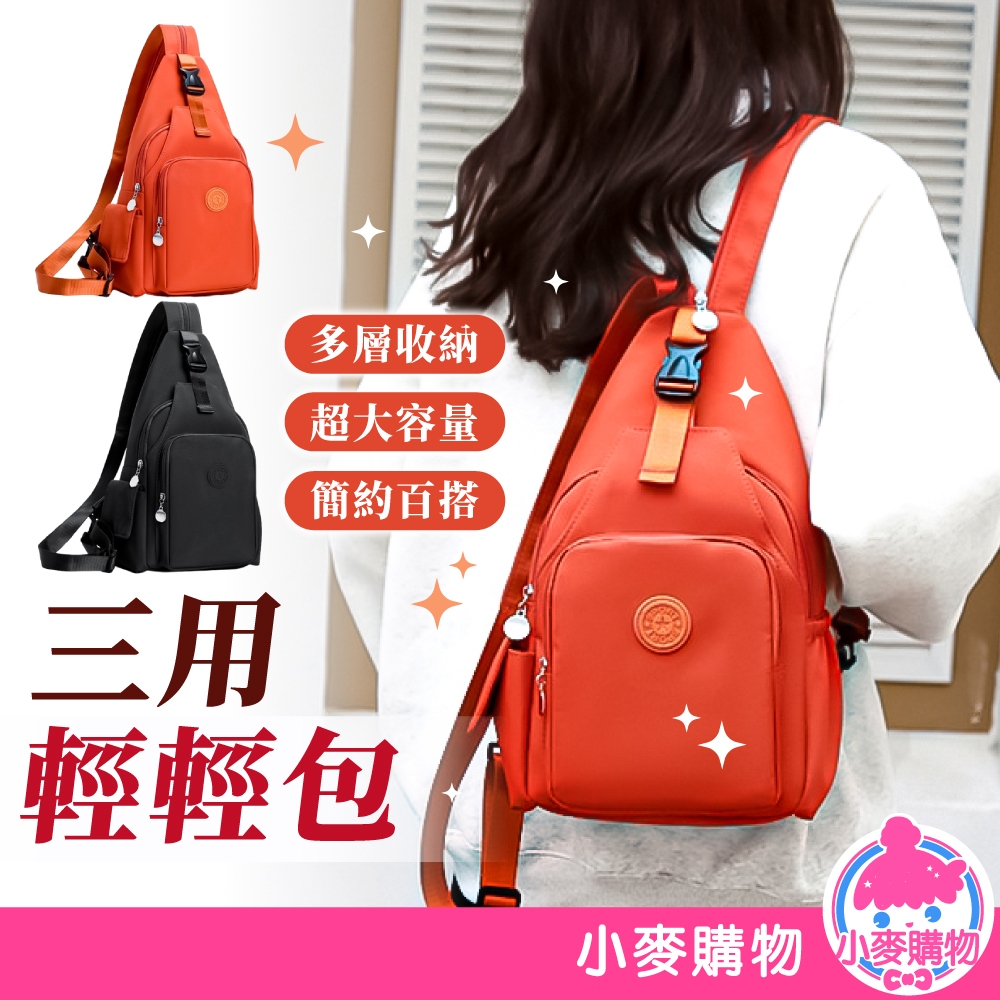 三用輕輕包 三用包 多層斜背包 雙肩包 多層牛津包 斜背包 休閒包 多功能背包 單肩包 側背包【小麥購物】【E174】時尚黑|暮色橘 小麥購物