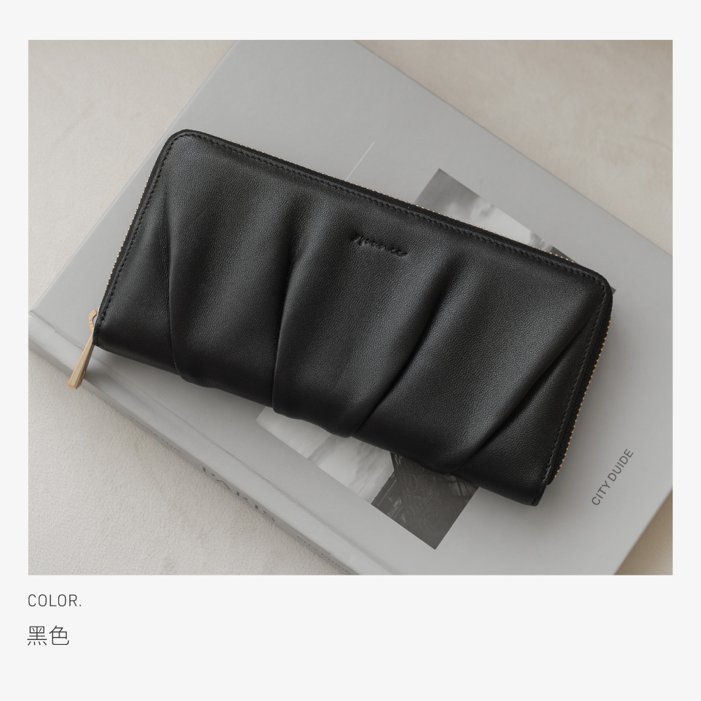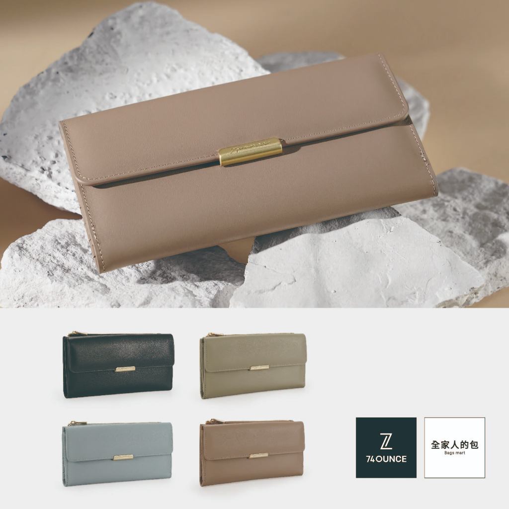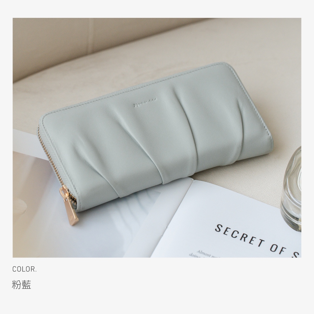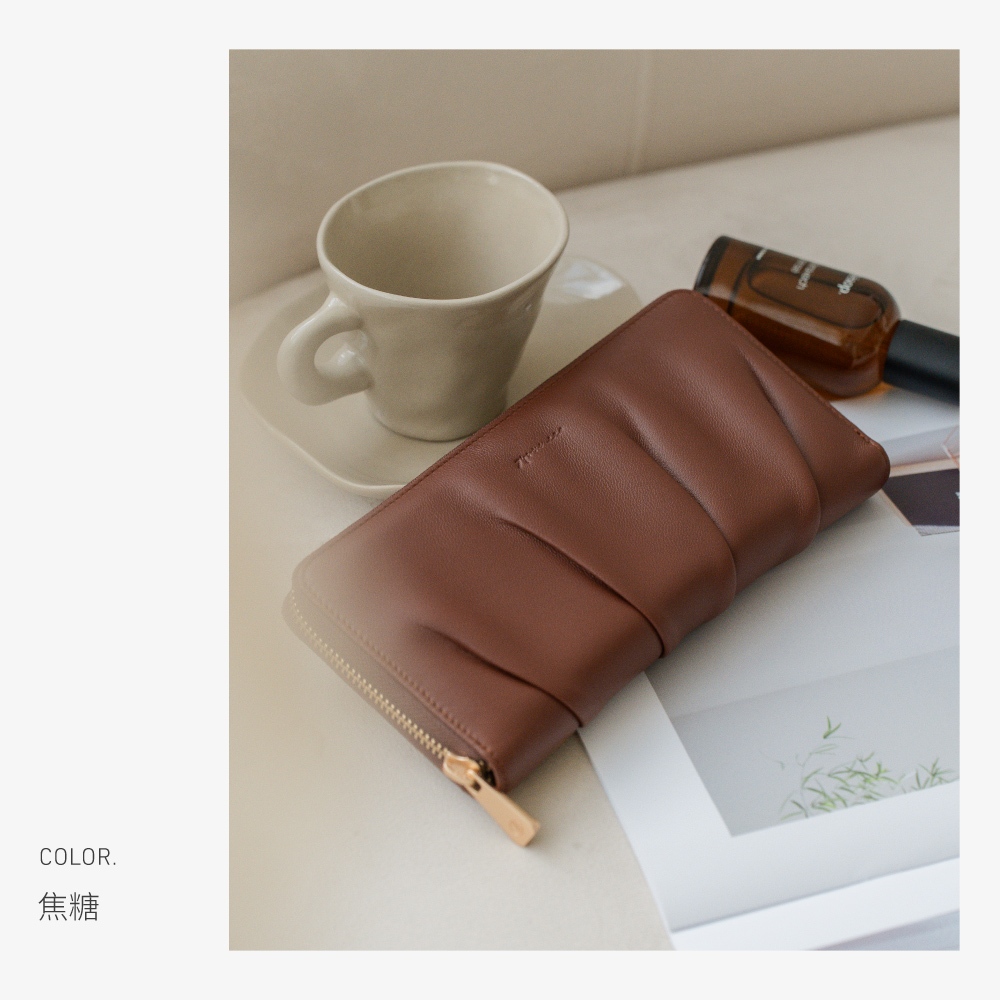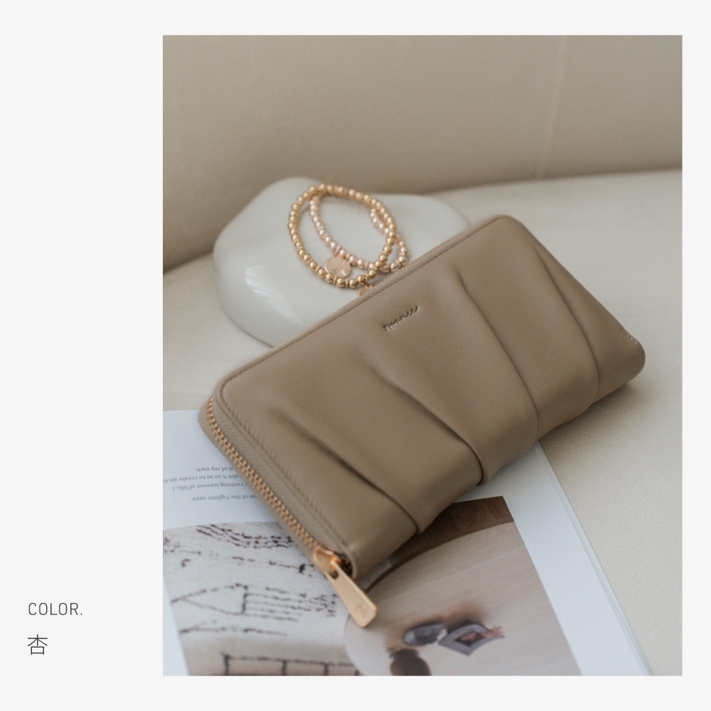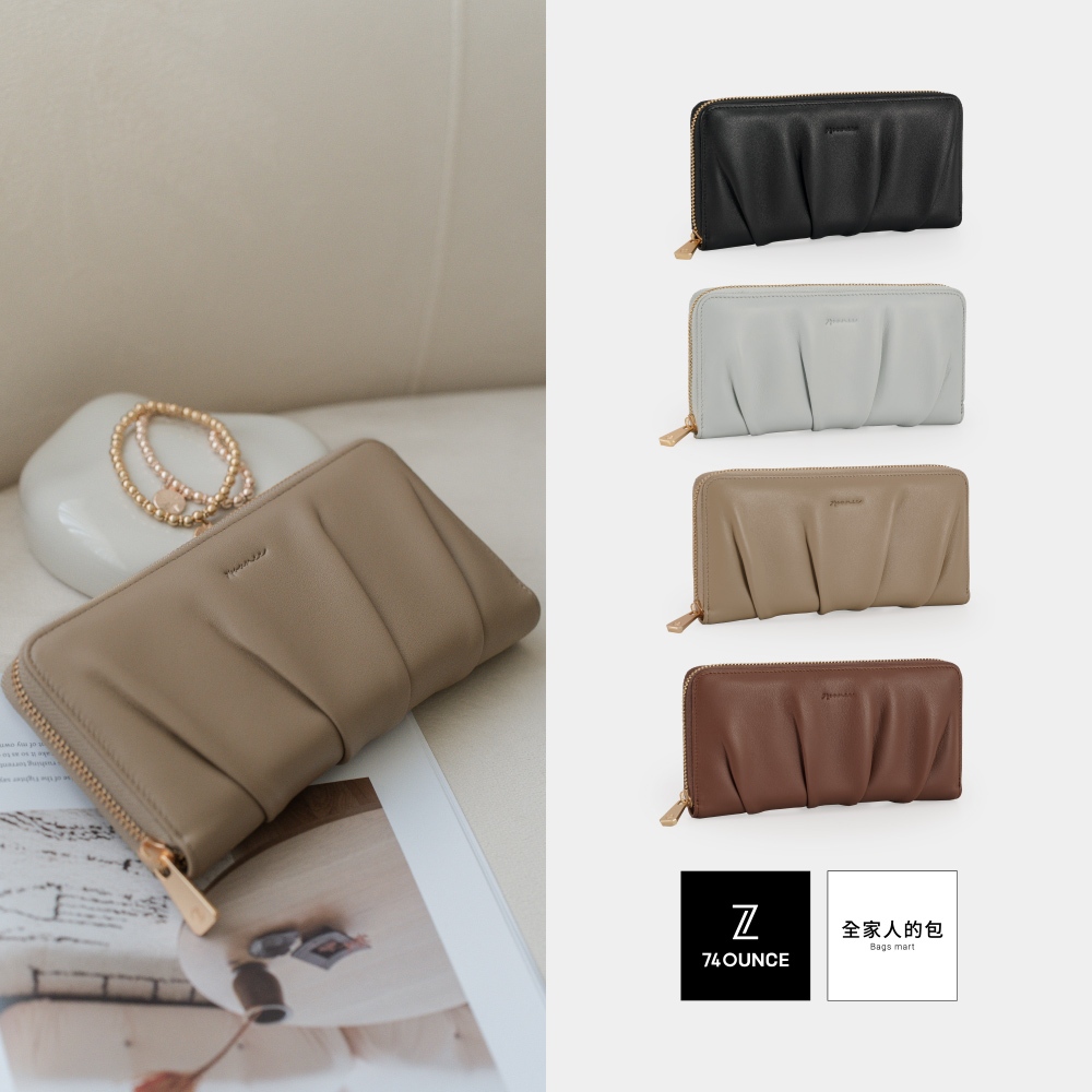 74ounce 柔韻抓皺ㄇ字拉鍊長夾[LN-824-Q2-W]杏|粉藍|焦糖|黑Long Wallets74ounce