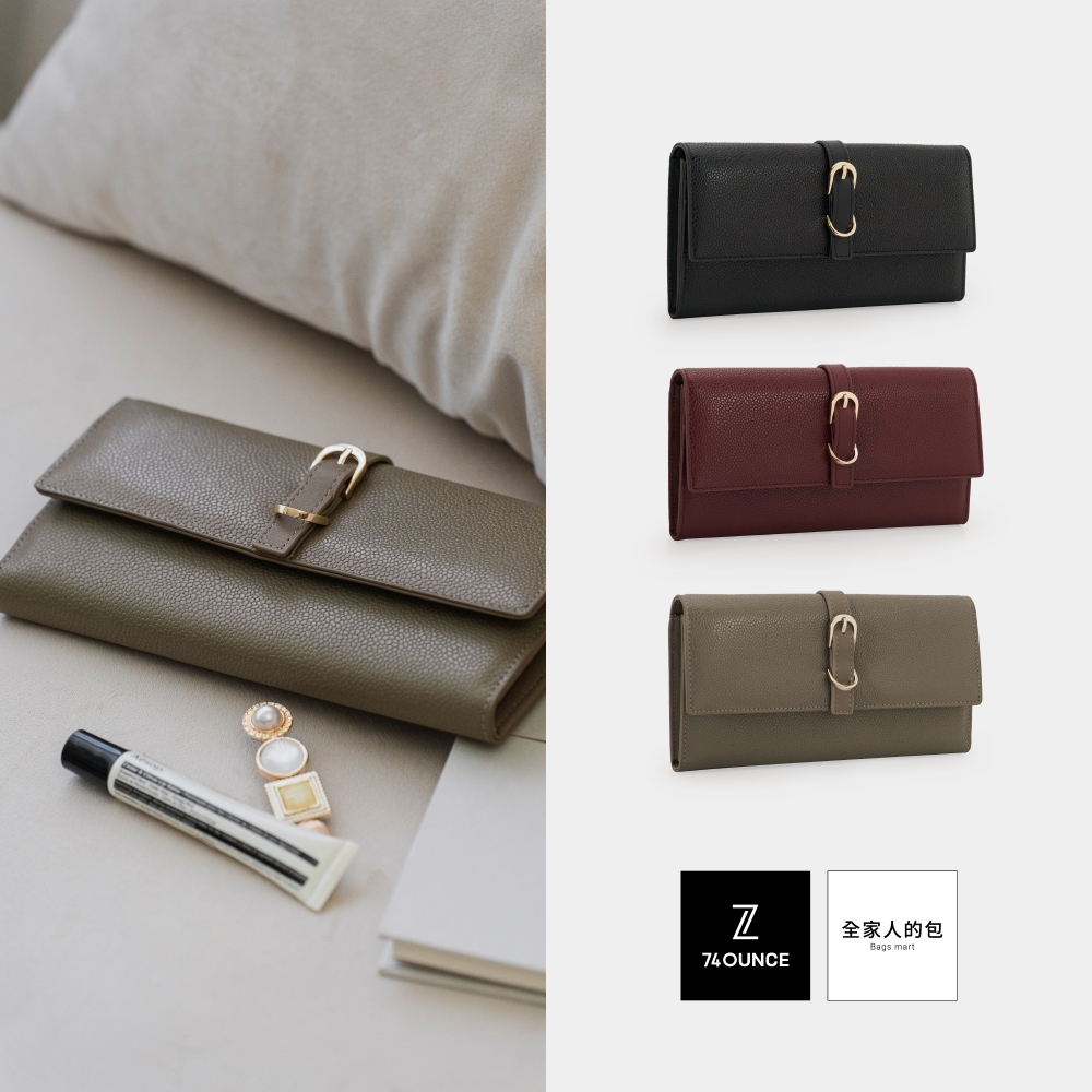 74ounce Caviar穿帶翻蓋長夾[LN-821-Q1-W]大象灰|酒紅|曜石黑Long Wallets74ounce