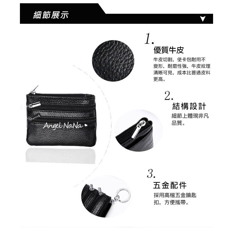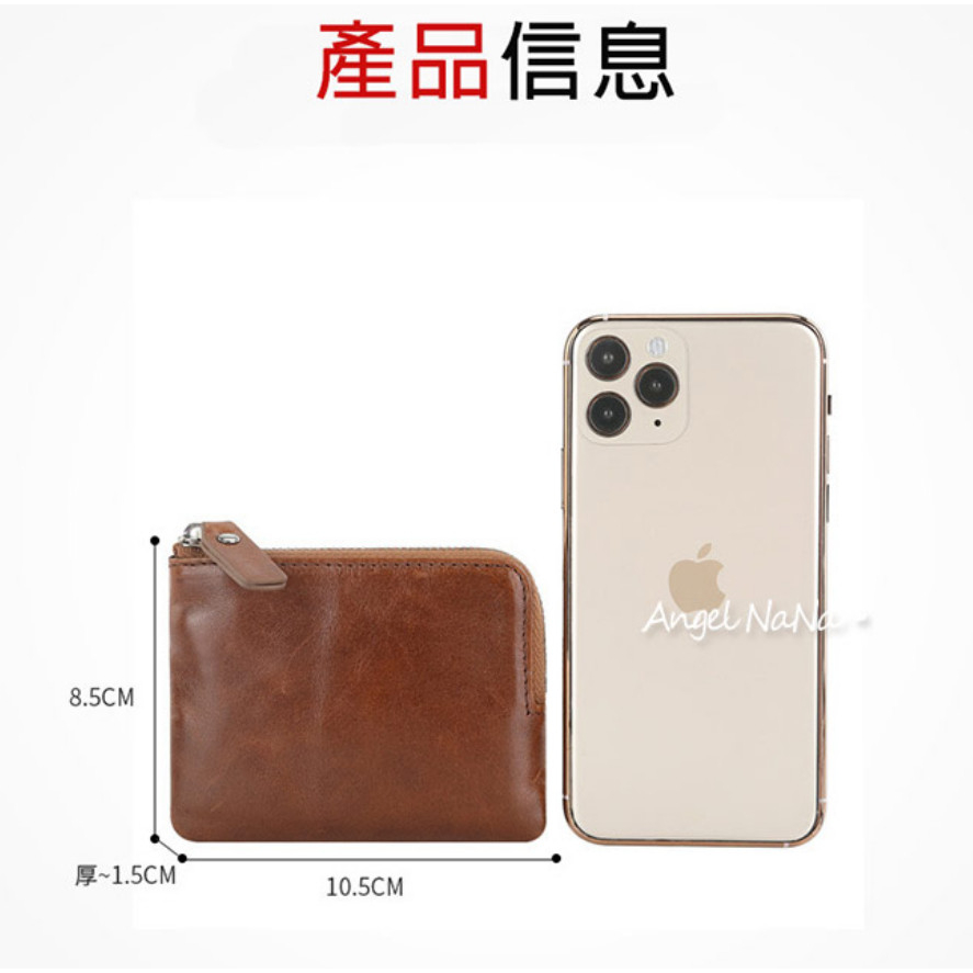 【AngelNaNa】真皮鑰匙包-簡約頭層牛皮L形拉鍊零錢包口紅包男女(SMA0375)黑色|深棕Phone & Key WalletsAngelNaNa官方旗艦店