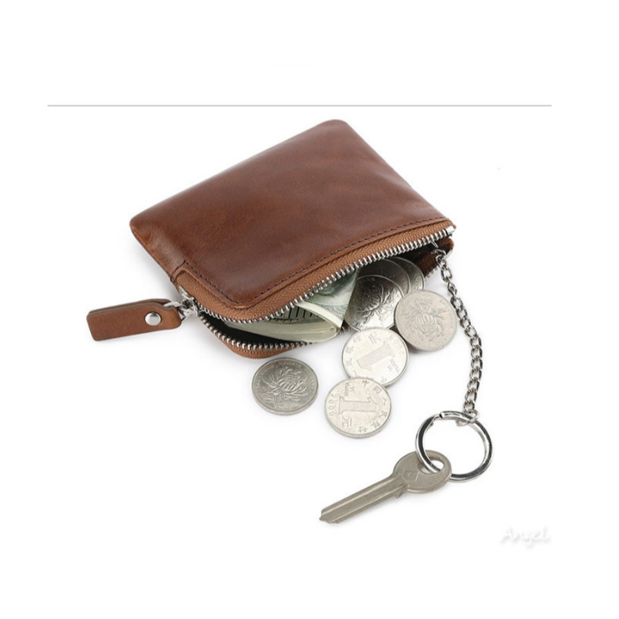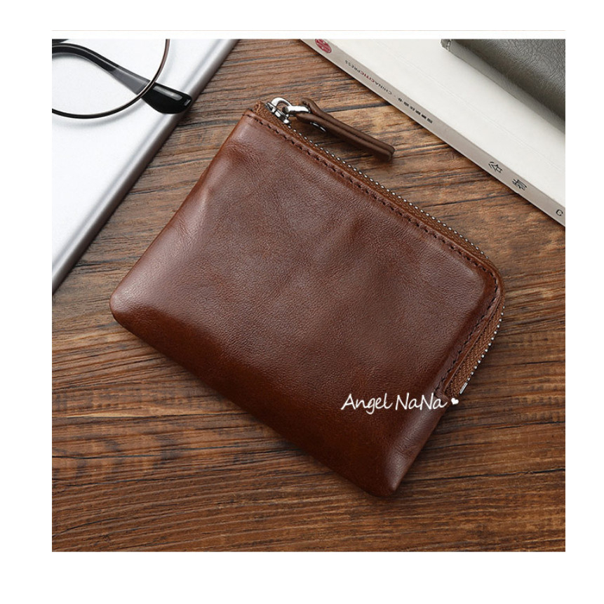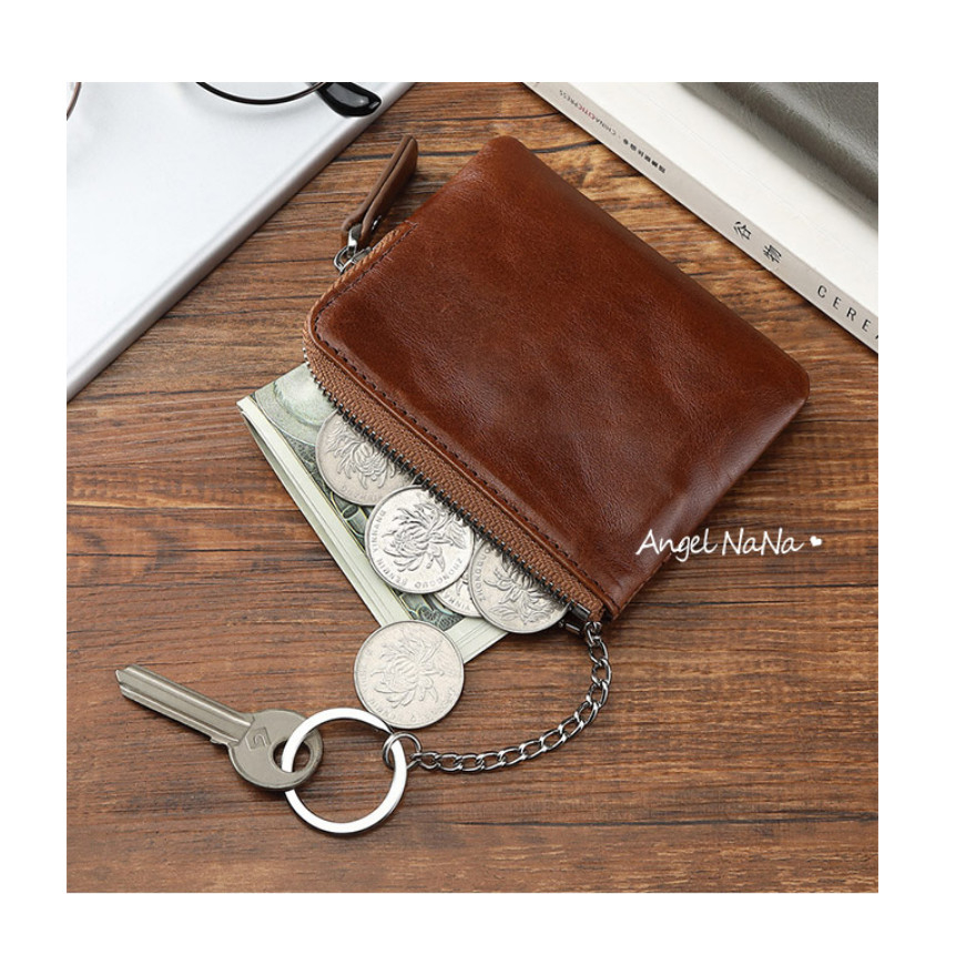 【AngelNaNa】真皮鑰匙包-簡約頭層牛皮L形拉鍊零錢包口紅包男女(SMA0375)