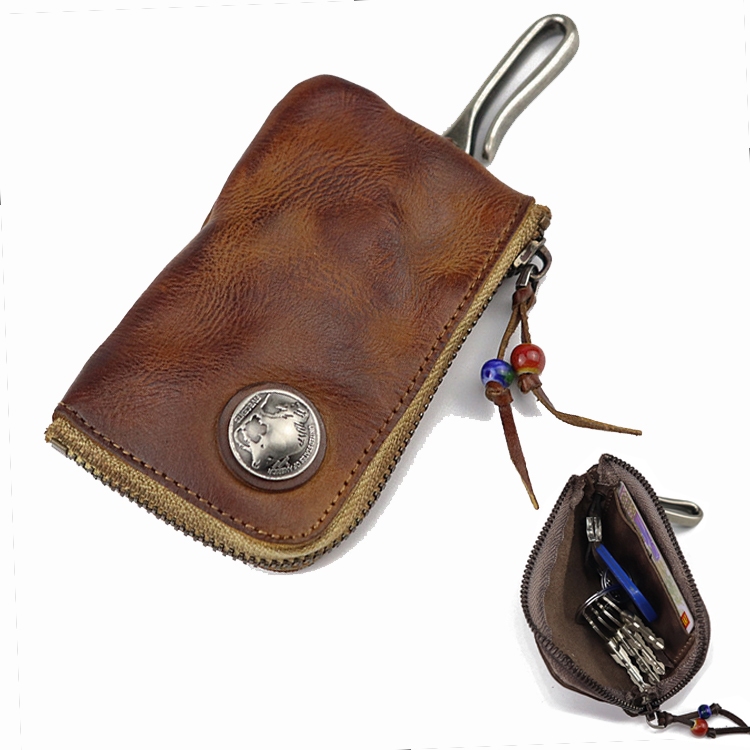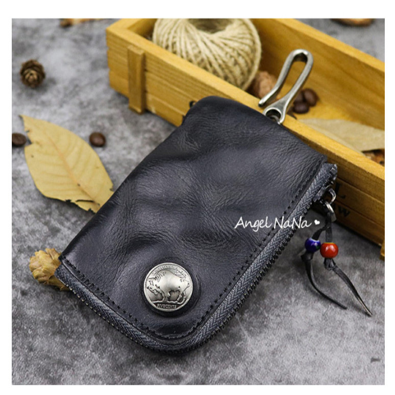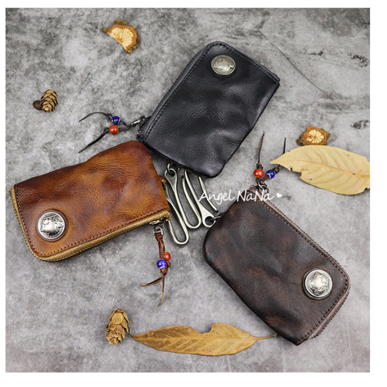 【AngelNaNa】真皮鑰匙包-復古做舊植鞣皮水洗牛皮頭層牛皮男女中性鑰匙包零錢包(SMA0381)淺棕|黑灰色|深咖Phone & Key WalletsAngelNaNa官方旗艦店