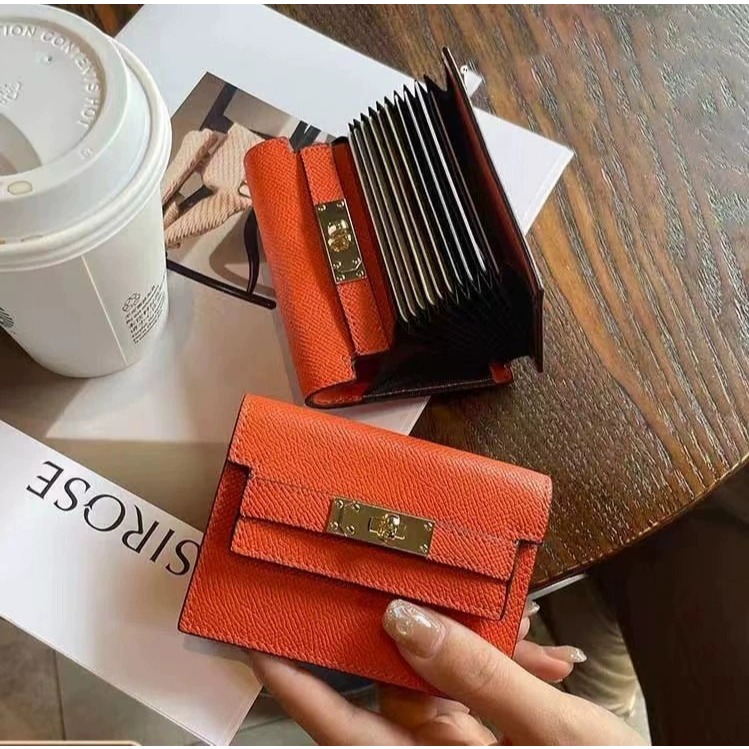 【AngelNaNa】真皮卡包-ins頭層牛皮女證件包卡夾機車包(10卡位) (SMA0411)黑色|大象灰|愛馬仕橘|焦糖色Card HoldersAngelNaNa官方旗艦店