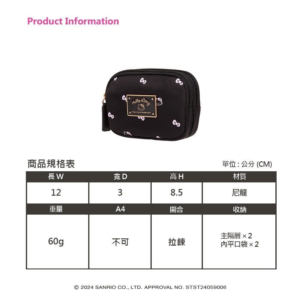 【Hello Kitty】優雅凱蒂-雙層零錢包-黑 KT03F05BK黑色Coin Holders & PursesBAG TO YOU 百達遊官方授權旗艦店