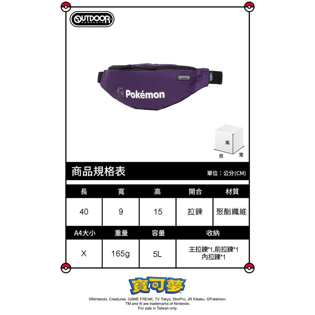 【OUTDOOR】Pokemon聯名款夜光耿鬼腰包-紫色 ODGO21A05PL紫色BAG TO YOU 百達遊官方授權旗艦店
